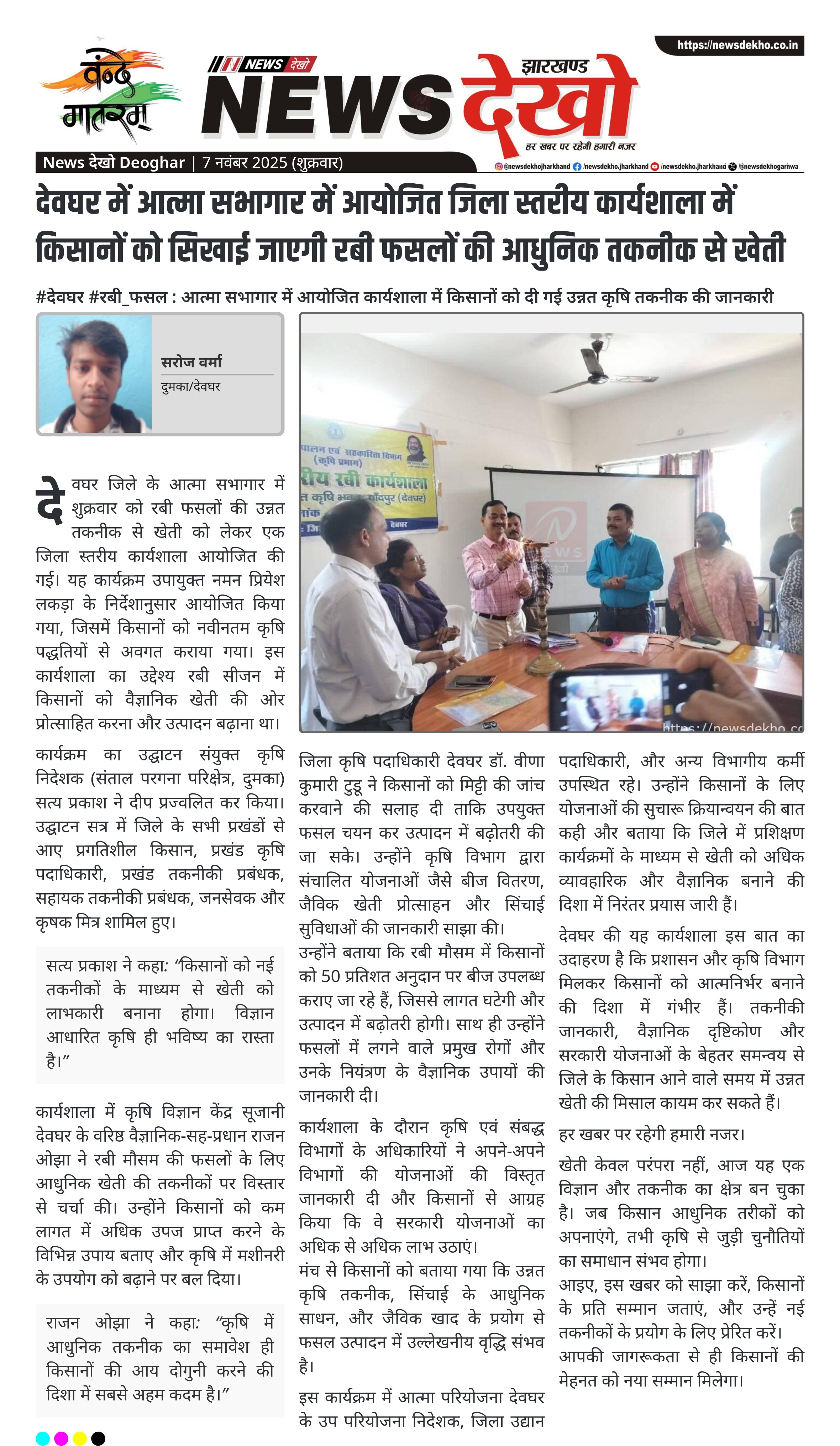 देवघर में आत्मा सभागार में आयोजित जिला स्तरीय कार्यशाला में किसानों को सिखाई जाएगी रबी फसलों की आधुनिक तकनीक से खेती