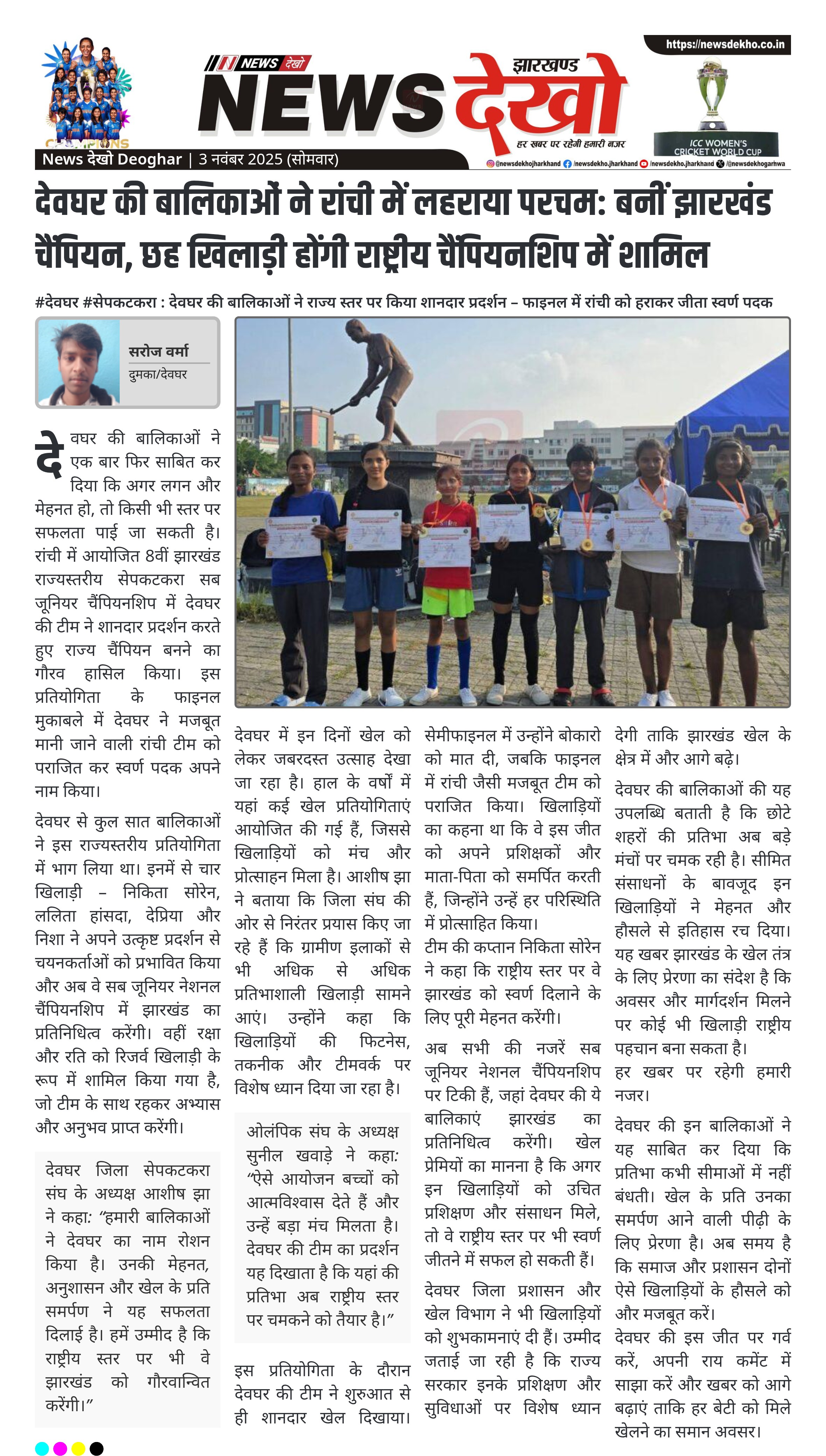 देवघर की बालिकाओं ने रांची में लहराया परचम: बनीं झारखंड चैंपियन, छह खिलाड़ी होंगी राष्ट्रीय चैंपियनशिप में शामिल
