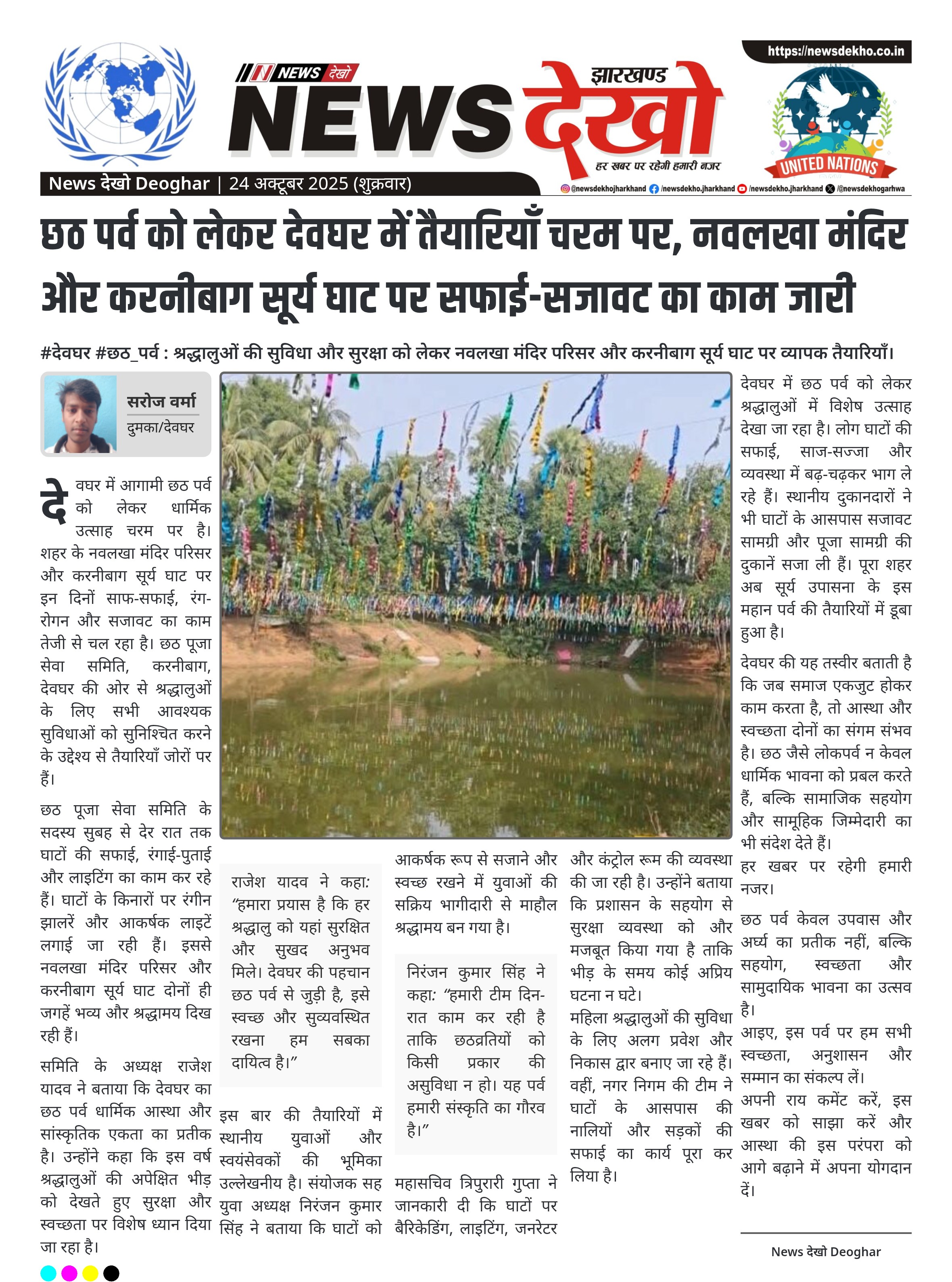 छठ पर्व को लेकर देवघर में तैयारियाँ चरम पर, नवलखा मंदिर और करनीबाग सूर्य घाट पर सफाई-सजावट का काम जारी