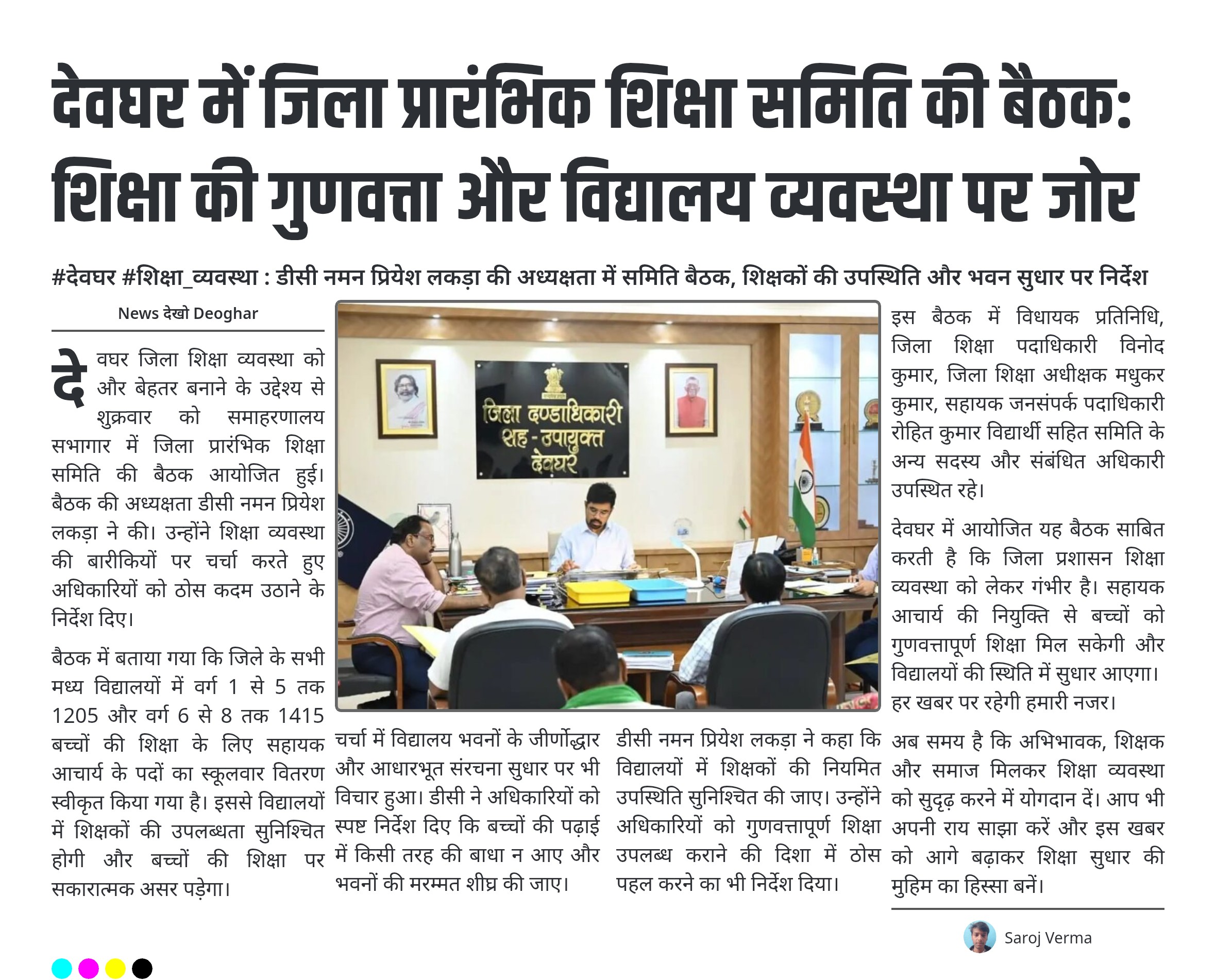 #देवघर #शिक्षा_व्यवस्था : डीसी नमन प्रियेश लकड़ा की अध्यक्षता में समिति बैठक, शिक्षकों की उपस्थिति और भवन सुधार पर निर्देश डीसी नमन प्रियेश लकड़ा की अध्यक्षता में जिला प्रारंभिक शिक्षा समिति की बैठक हुई। जिले के मध्य विद्यालयों की शैक्षणिक स्थिति पर हुई विस्तृत चर्चा। 1205 सहायक आचार्य वर्ग 1-5…