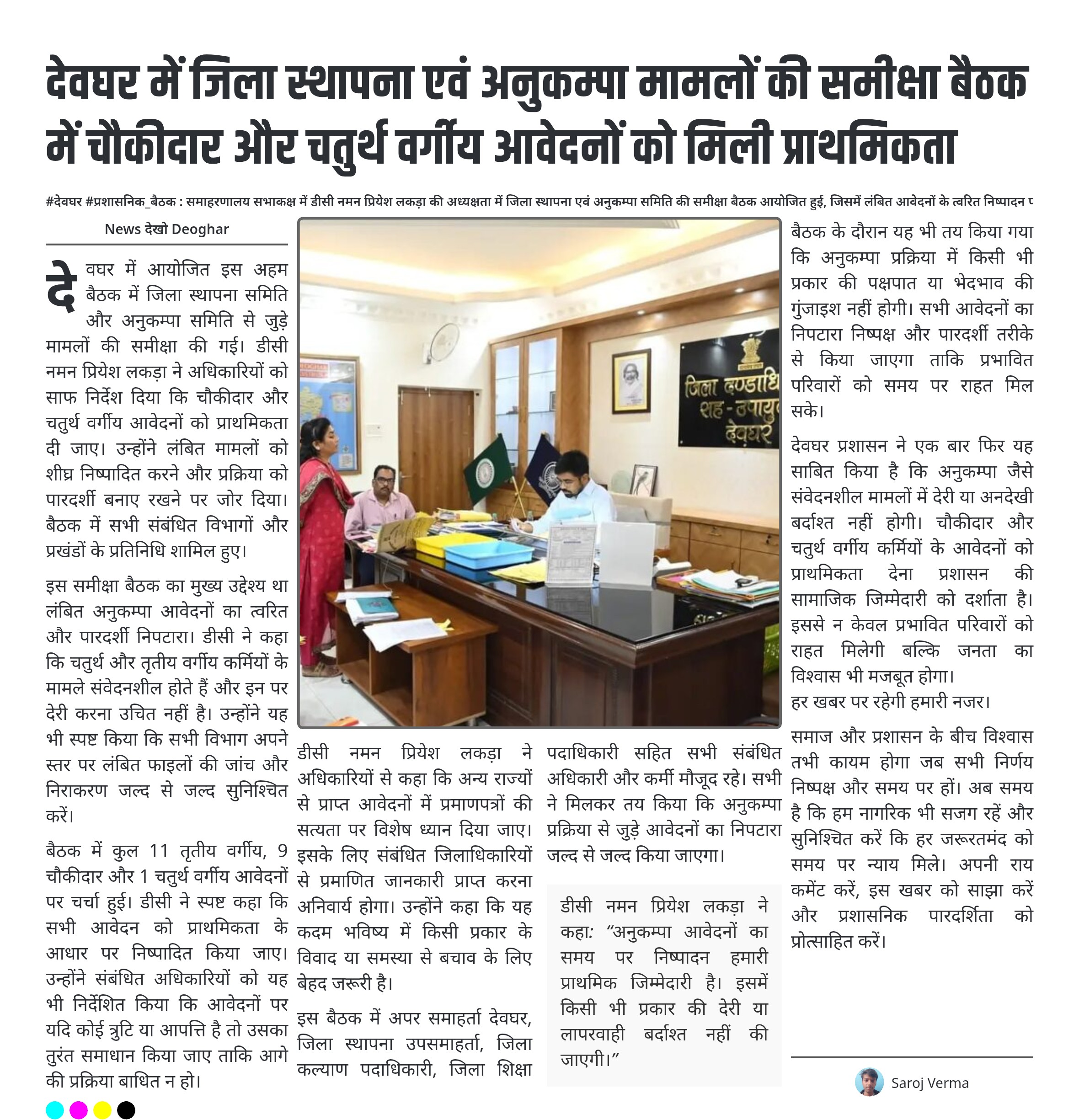 देवघर में जिला स्थापना एवं अनुकम्पा मामलों की समीक्षा बैठक में चौकीदार और चतुर्थ वर्गीय आवेदनों को मिली प्राथमिकता
