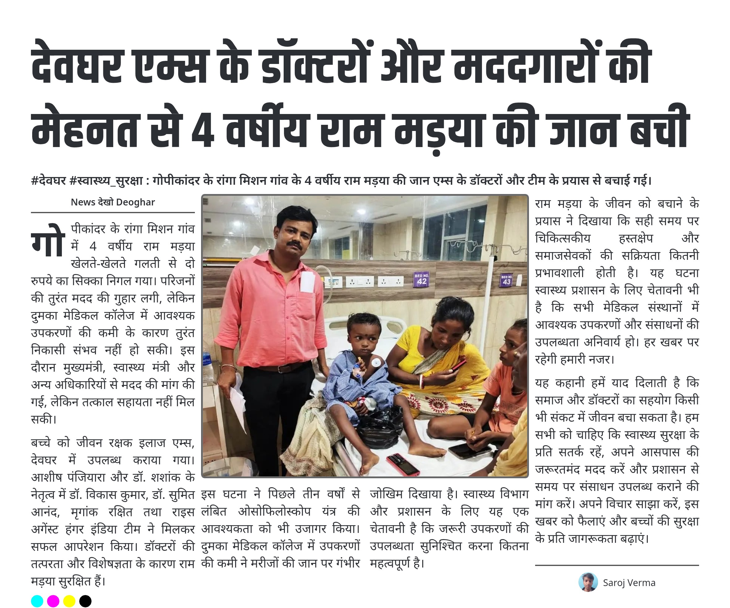देवघर एम्स के डॉक्टरों और मददगारों की मेहनत से 4 वर्षीय राम मड़या की जान बची