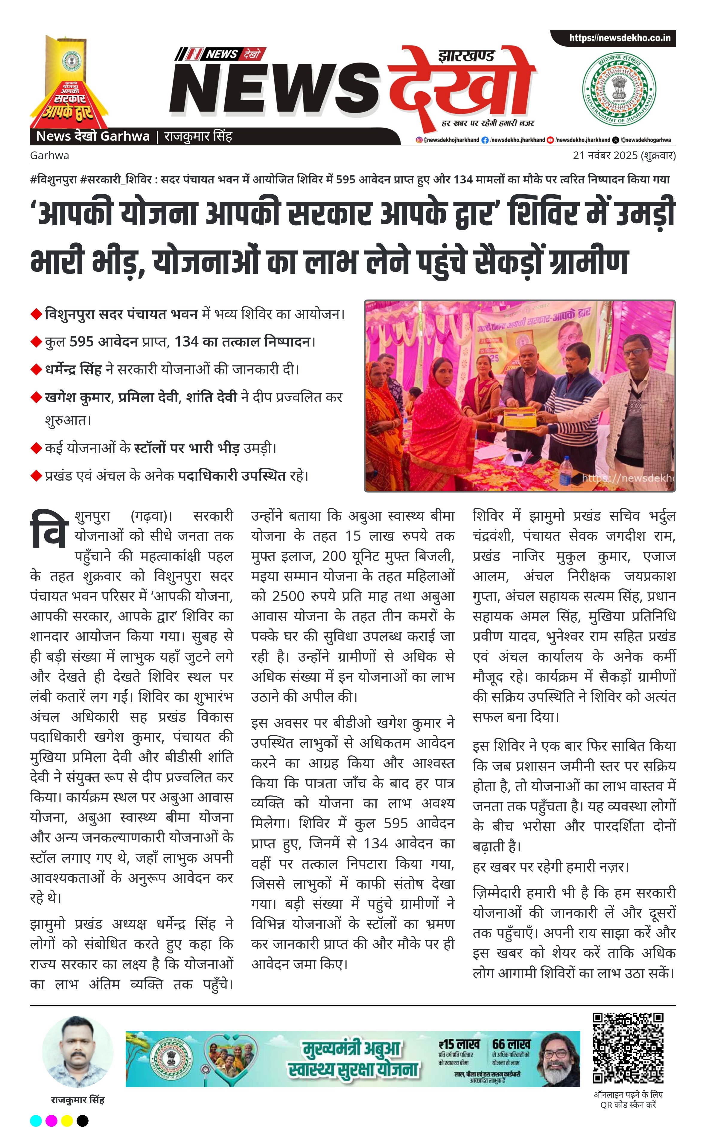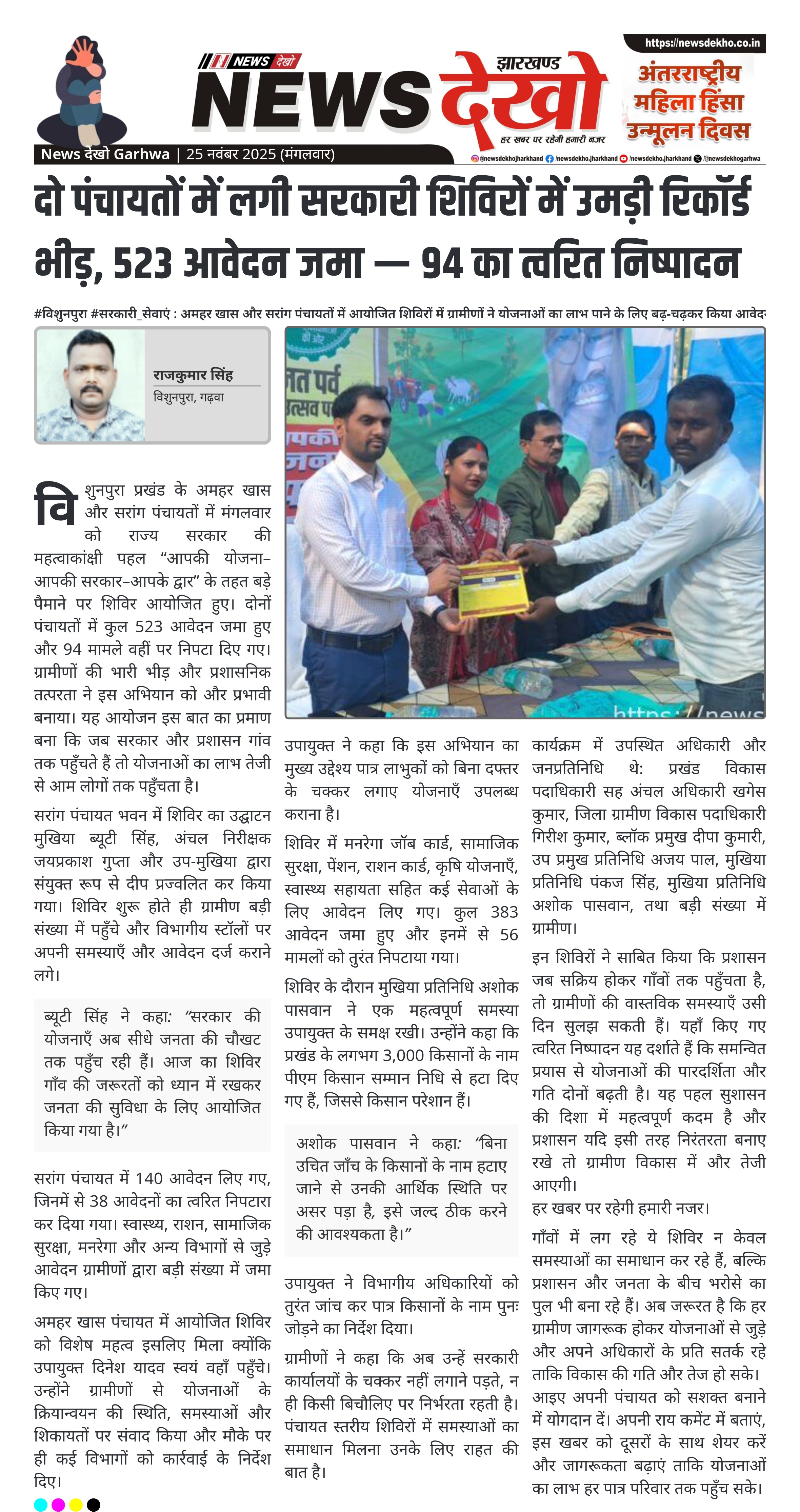 दो पंचायतों में लगी सरकारी शिविरों में उमड़ी रिकॉर्ड भीड़, 523 आवेदन जमा — 94 का त्वरित निष्पादन