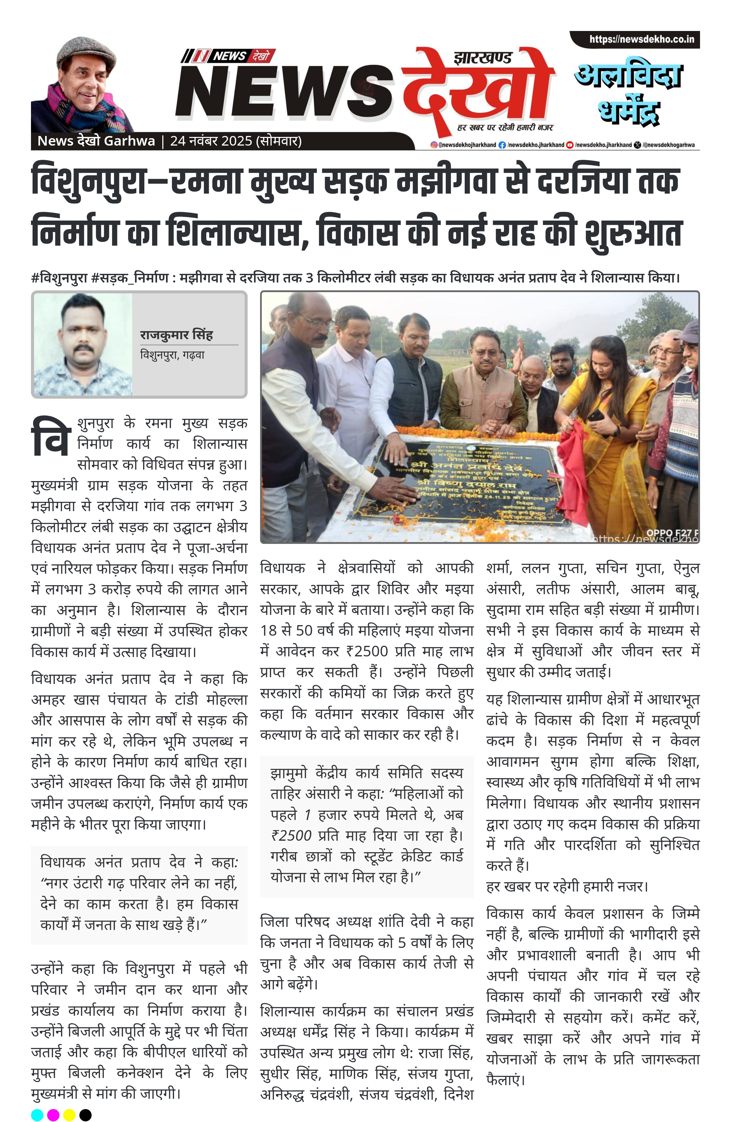 #गढ़वा #सड़कदुर्घटना : पूर्व मंत्री ने परिजनों से मिलकर संवेदना व्यक्त की—प्रशासन को सड़क सुरक्षा पर सख्त कदम उठाने की नसीहत। मानपुर गांव में दो युवकों की सड़क दुर्घटना में मौत। पूर्व मंत्री मिथिलेश ठाकुर ने परिजनों से की मुलाकात। क्रशर व वाहन मालिक से ढाई–ढाई लाख रुपये सहयोग दिलाया।…
