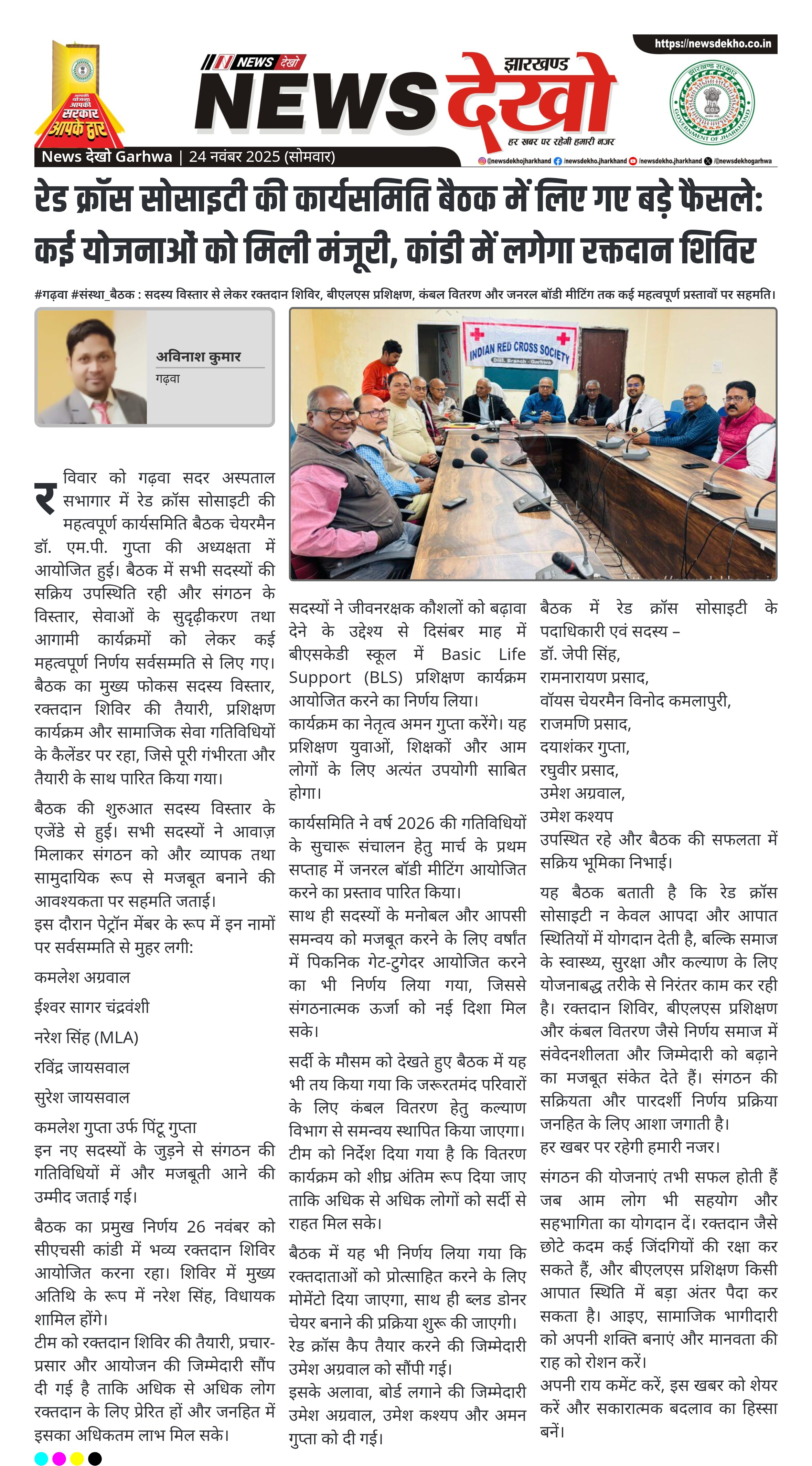 रेड क्रॉस सोसाइटी की कार्यसमिति बैठक में लिए गए बड़े फैसले: कई योजनाओं को मिली मंजूरी, कांडी में लगेगा रक्तदान शिविर