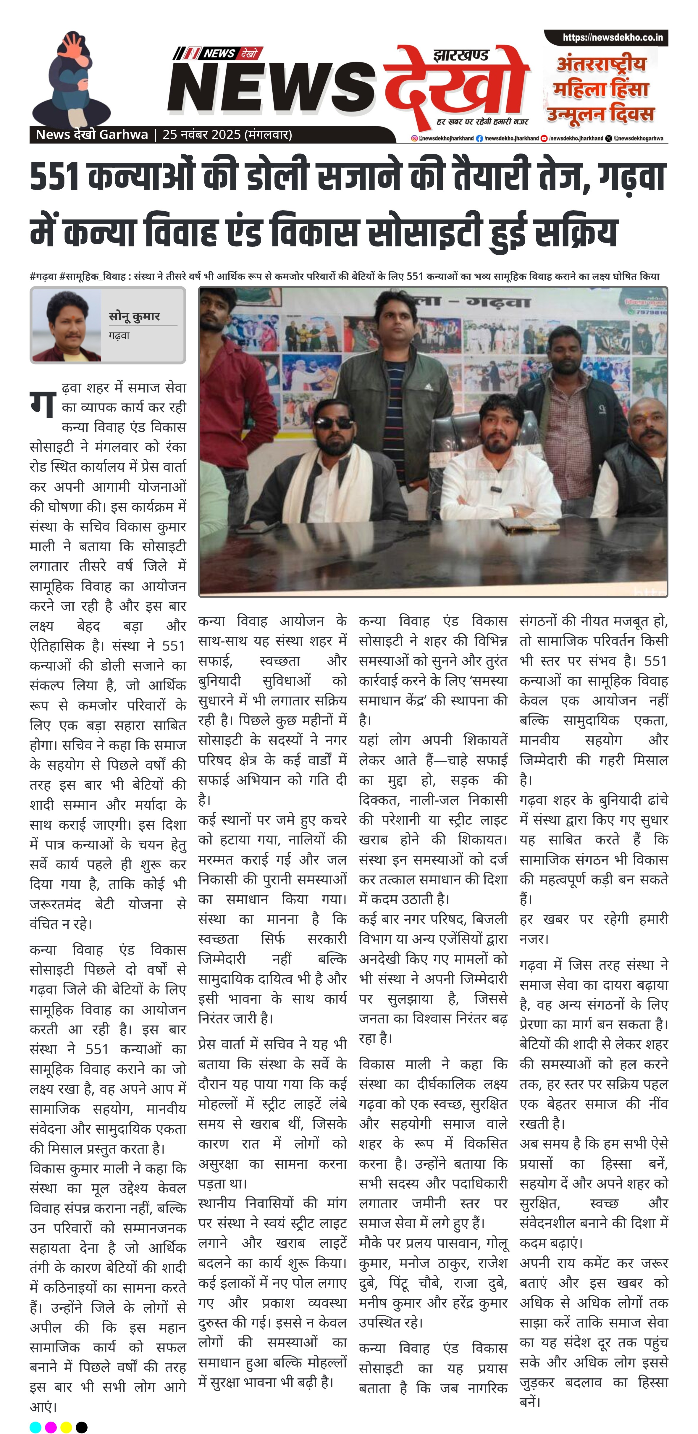 551 कन्याओं की डोली सजाने की तैयारी तेज, गढ़वा में कन्या विवाह एंड विकास सोसाइटी हुई सक्रिय