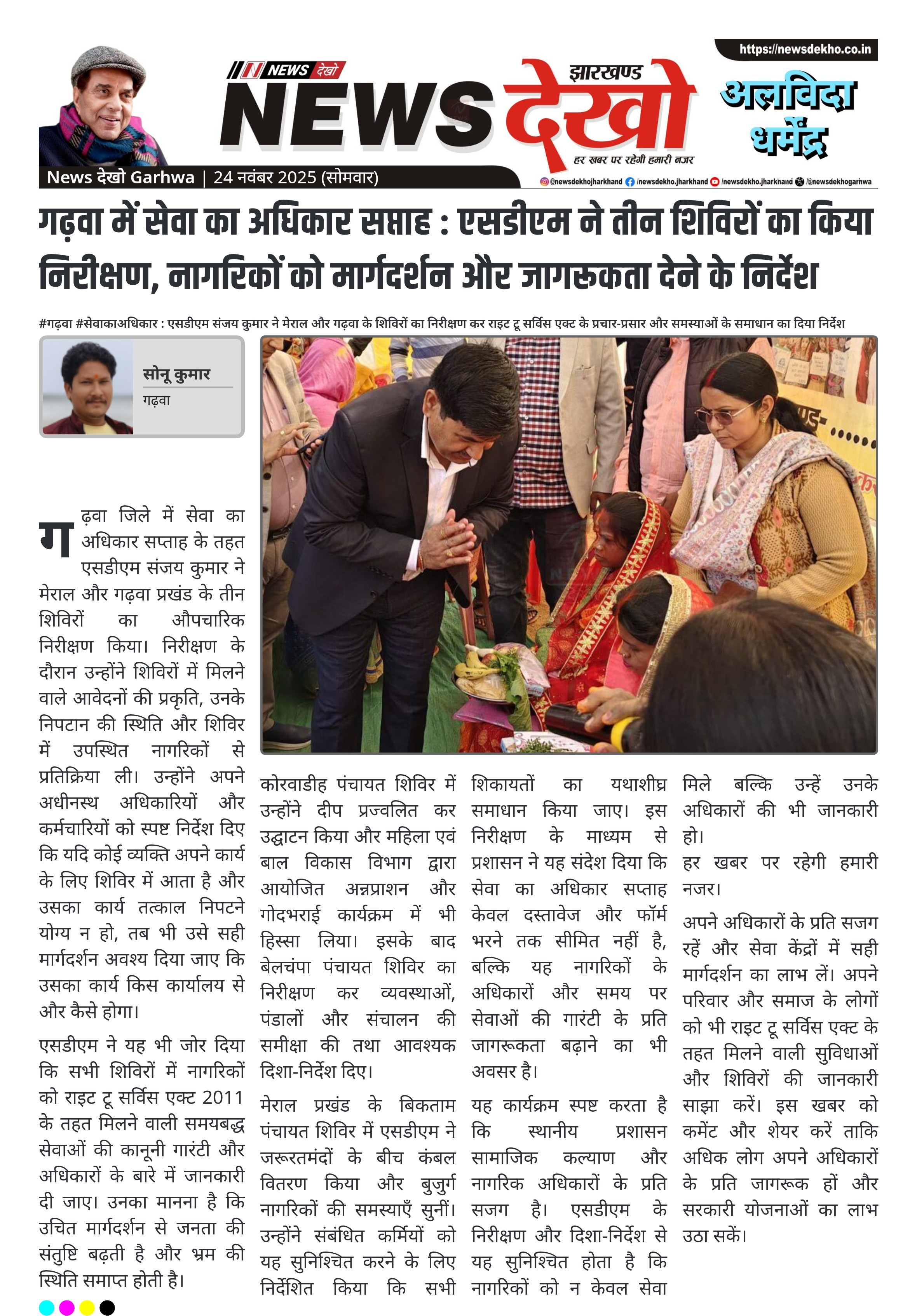 गढ़वा में सेवा का अधिकार सप्ताह : एसडीएम ने तीन शिविरों का किया निरीक्षण, नागरिकों को मार्गदर्शन और जागरूकता देने के निर्देश