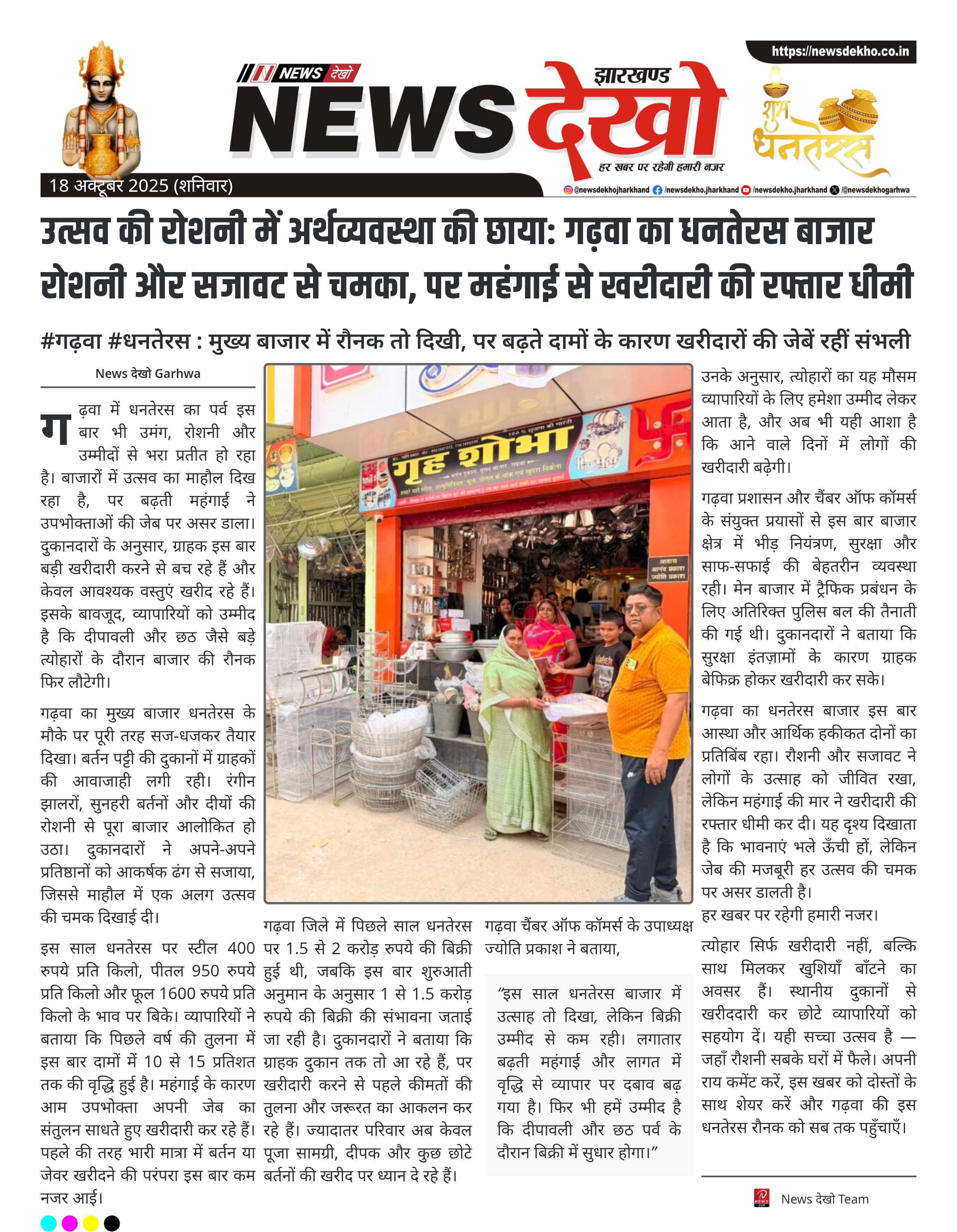 उत्सव की रोशनी में अर्थव्यवस्था की छाया: गढ़वा का धनतेरस बाजार रोशनी और सजावट से चमका, पर महंगाई से खरीदारी की रफ्तार धीमी