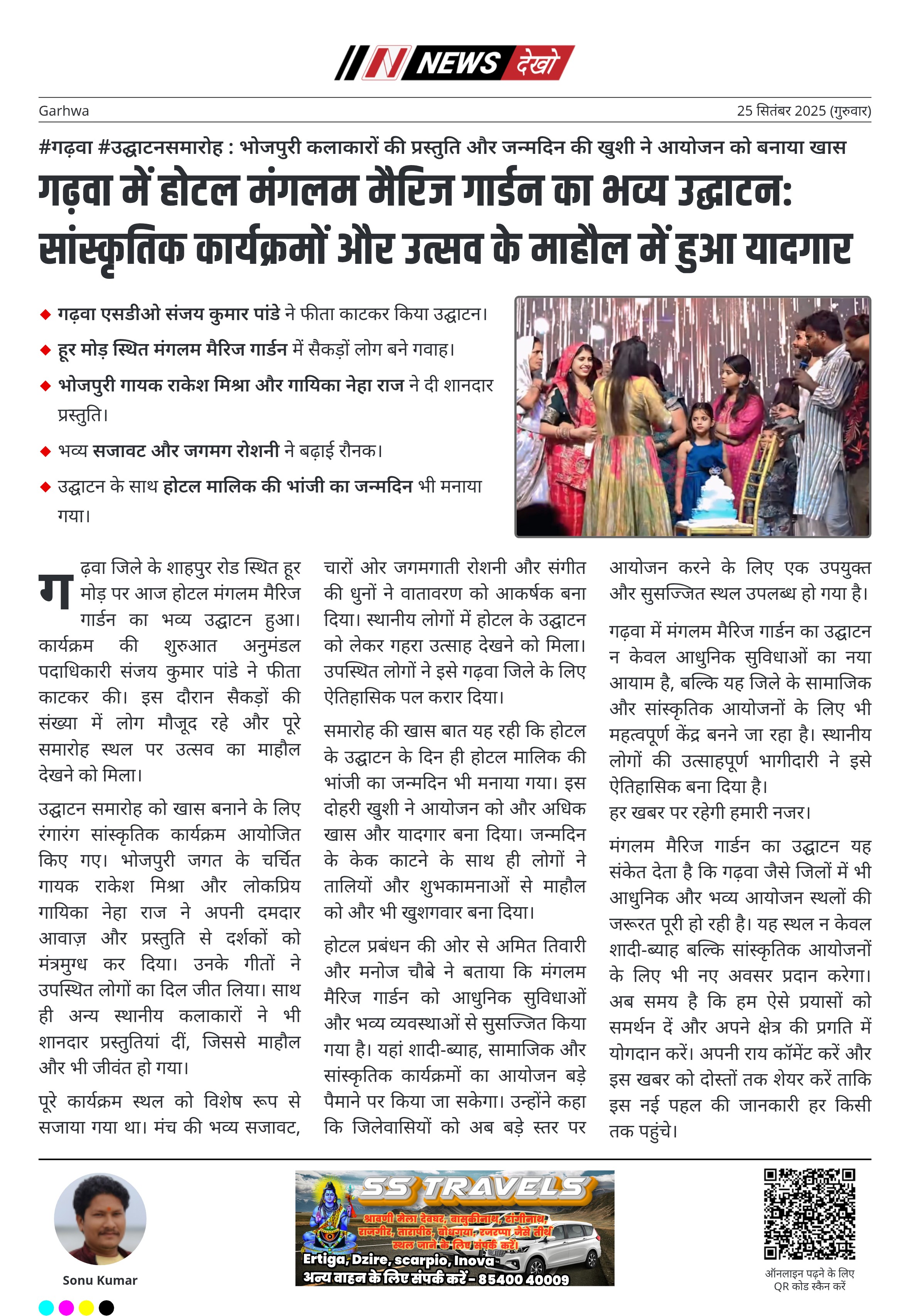 गढ़वा में होटल मंगलम मैरिज गार्डन का भव्य उद्घाटन: सांस्कृतिक कार्यक्रमों और उत्सव के माहौल में हुआ यादगार