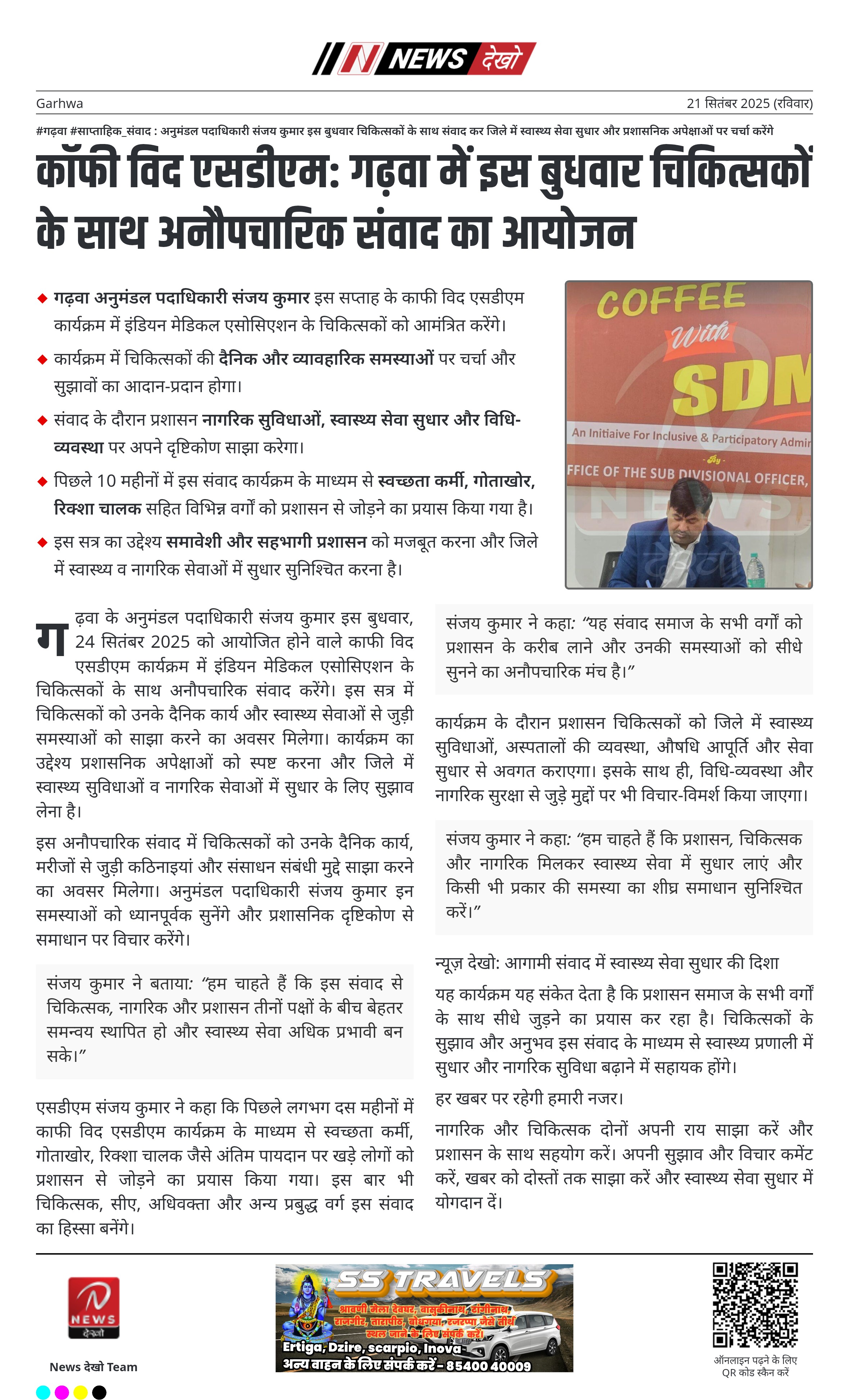 कॉफी विद एसडीएम: गढ़वा में इस बुधवार चिकित्सकों के साथ अनौपचारिक संवाद का आयोजन
