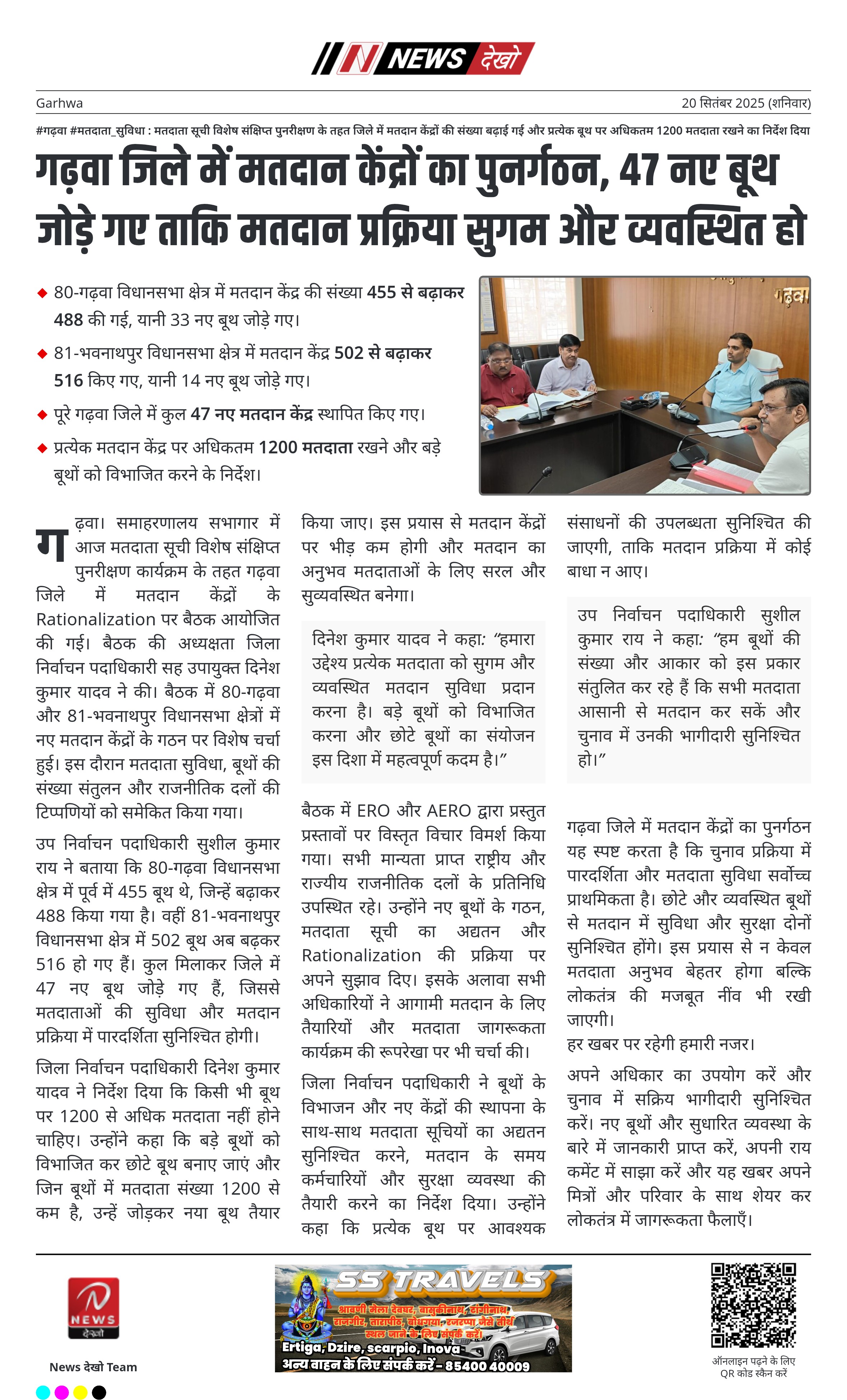 गढ़वा जिले में मतदान केंद्रों का पुनर्गठन, 47 नए बूथ जोड़े गए ताकि मतदान प्रक्रिया सुगम और व्यवस्थित हो