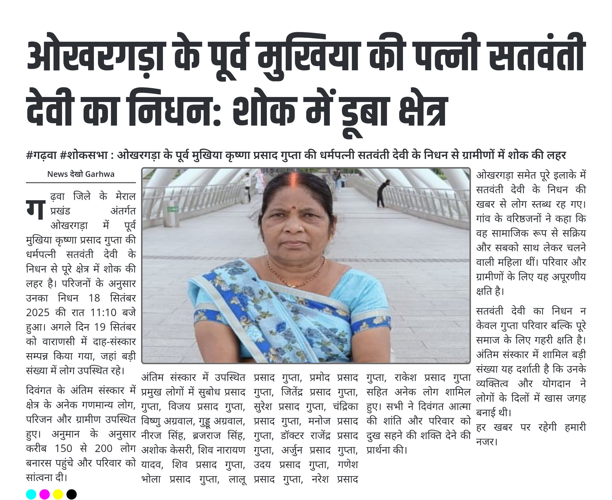 ओखरगड़ा के पूर्व मुखिया की पत्नी सतवंती देवी का निधन: शोक में डूबा क्षेत्र