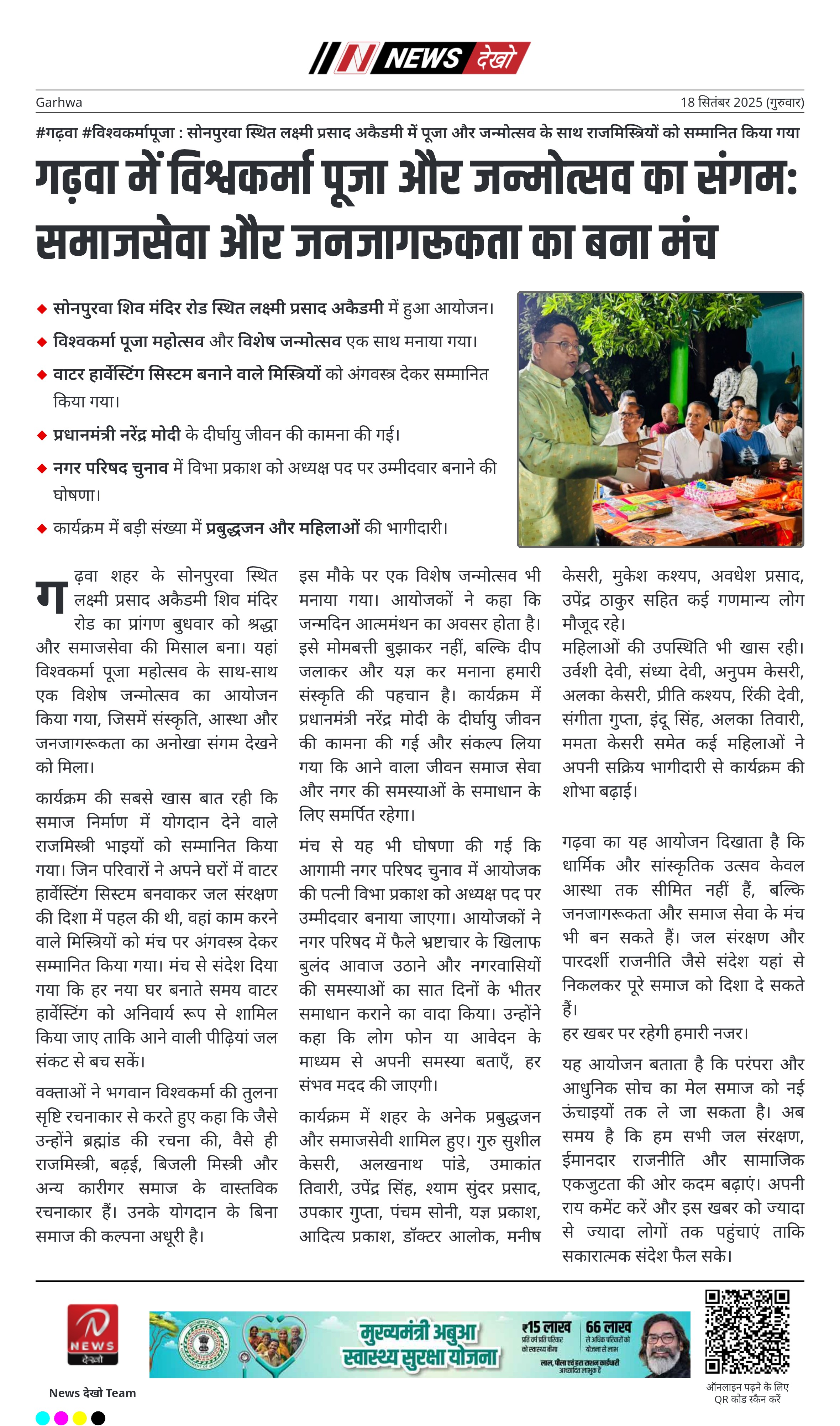 गढ़वा में विश्वकर्मा पूजा और जन्मोत्सव का संगम: समाजसेवा और जनजागरूकता का बना मंच