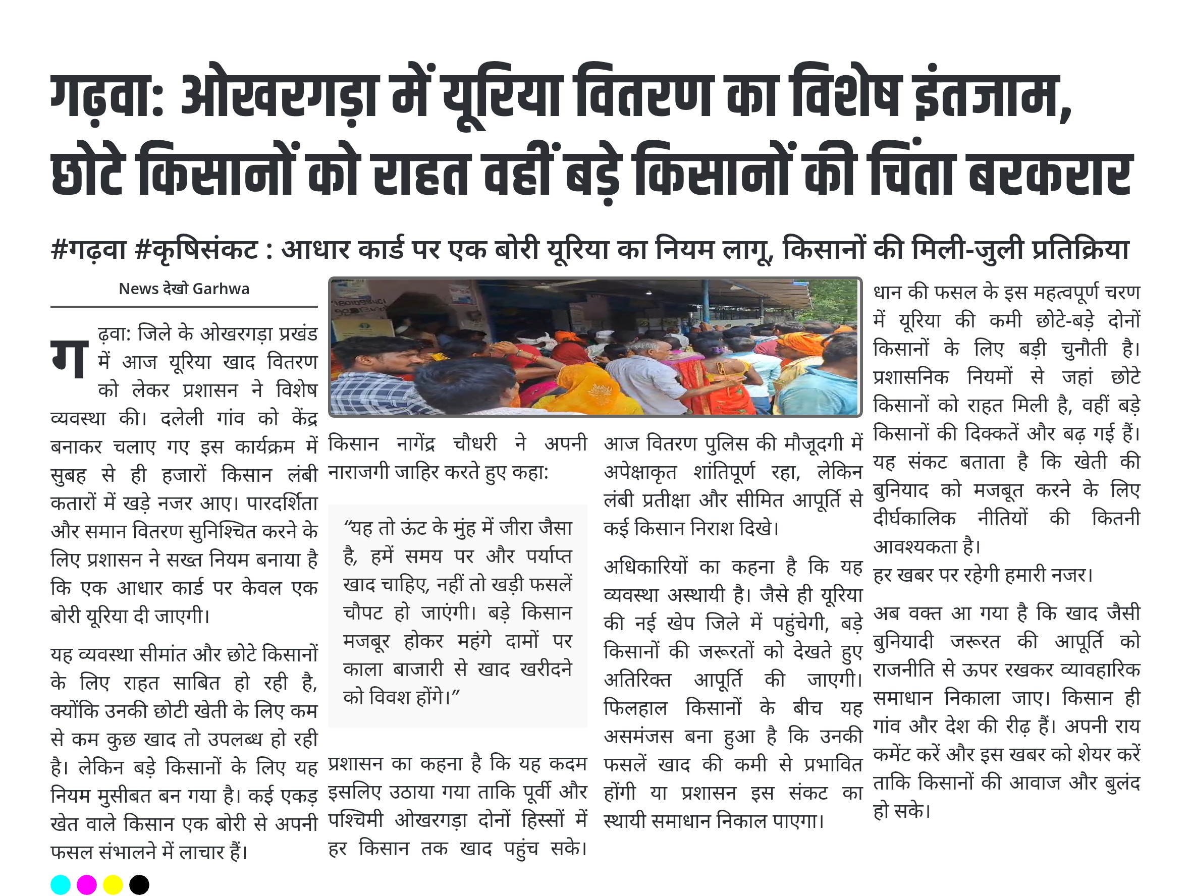 गढ़वा: ओखरगड़ा में यूरिया वितरण का विशेष इंतजाम, छोटे किसानों को राहत वहीं बड़े किसानों की चिंता बरकरार