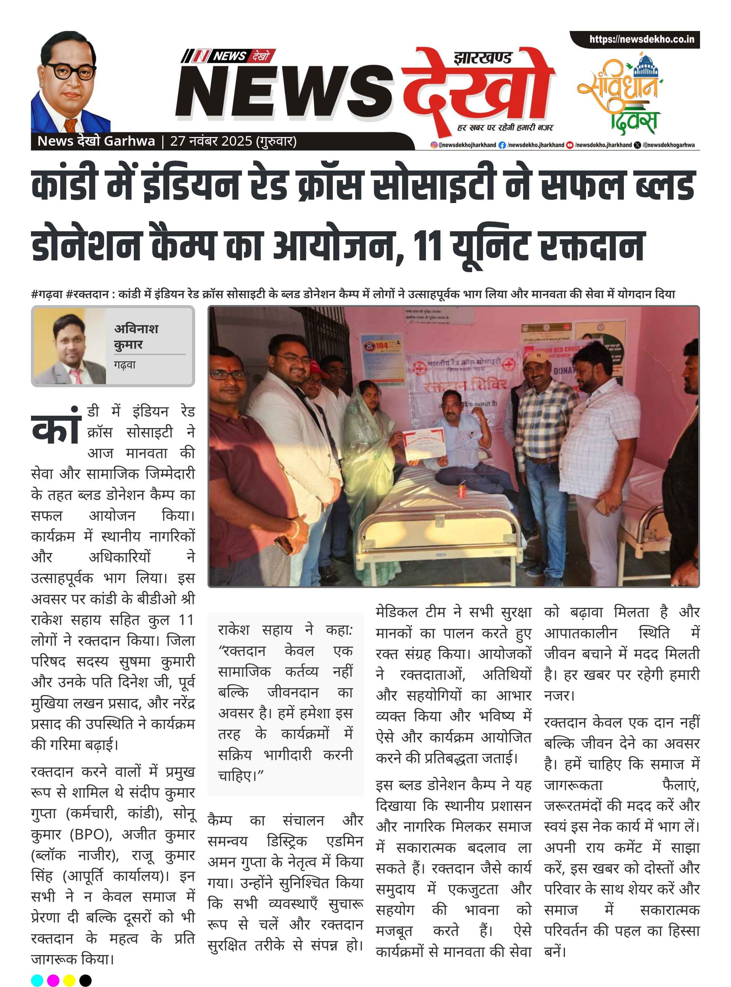 कांडी में इंडियन रेड क्रॉस सोसाइटी ने सफल ब्लड डोनेशन कैम्प का आयोजन, 11 यूनिट रक्तदान