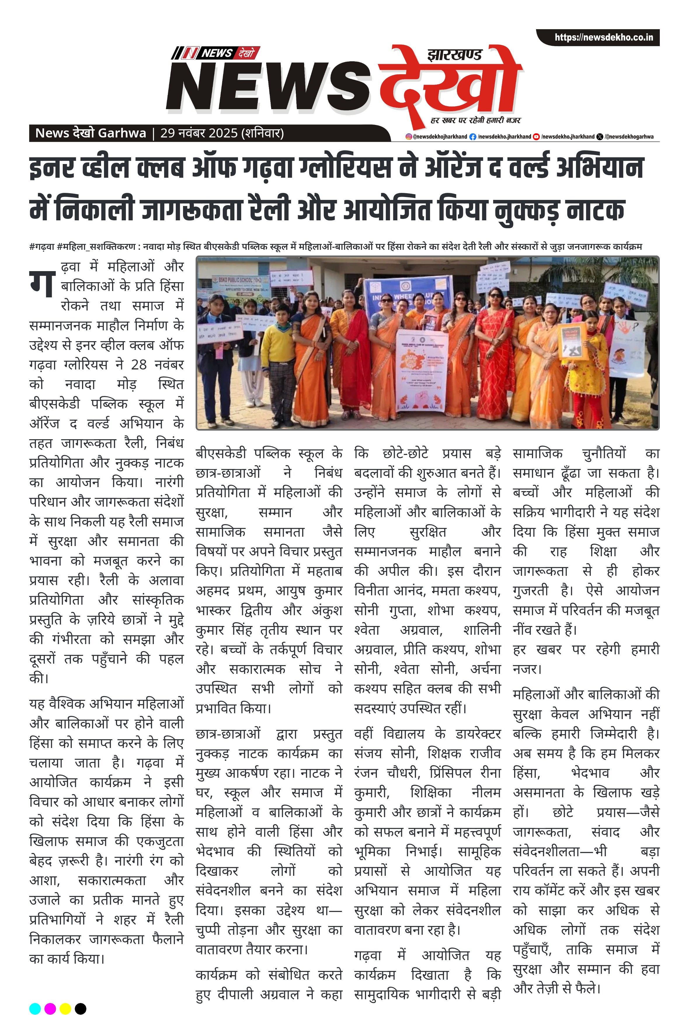 इनर व्हील क्लब ऑफ गढ़वा ग्लोरियस ने ऑरेंज द वर्ल्ड अभियान में निकाली जागरूकता रैली और आयोजित किया नुक्कड़ नाटक