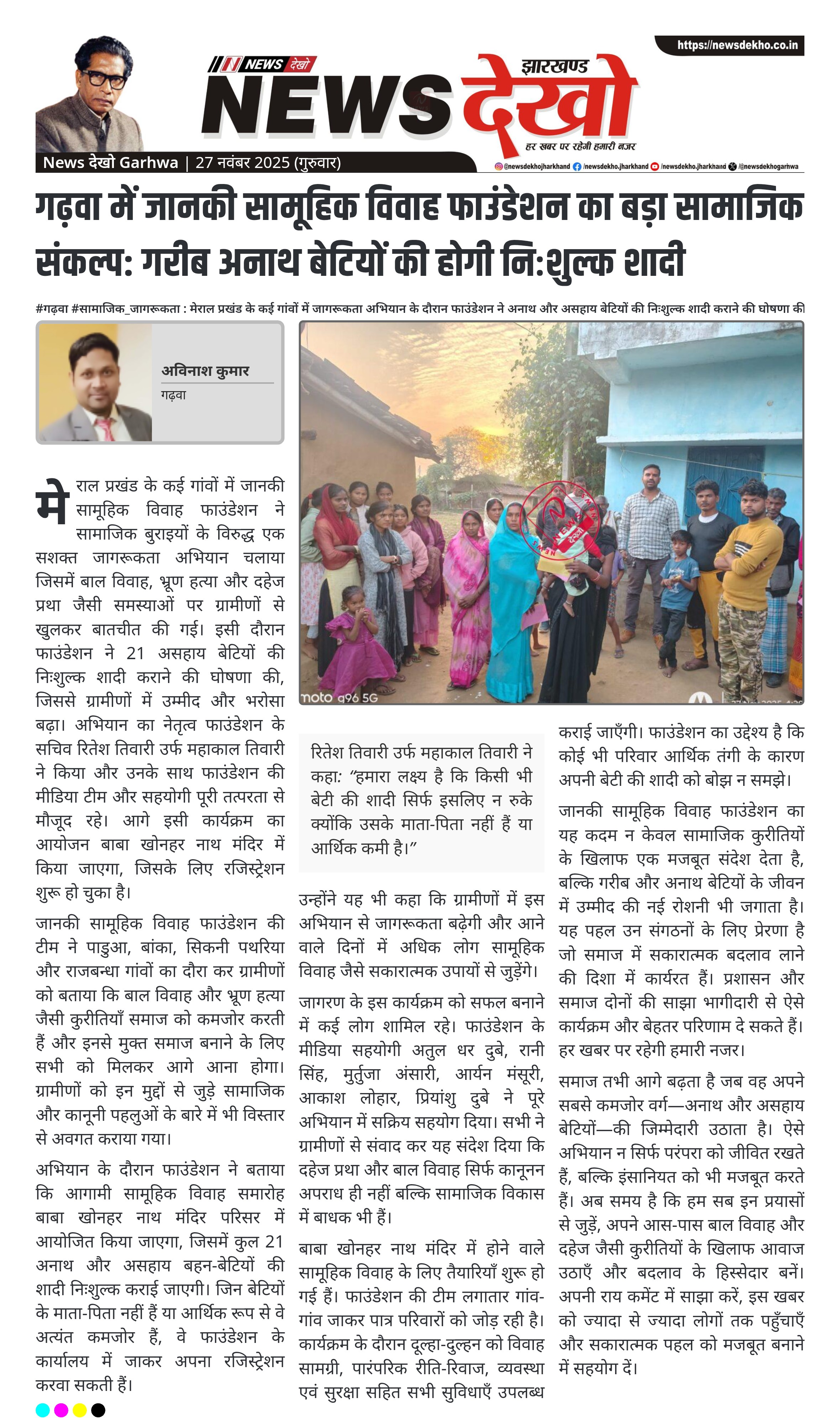 गढ़वा में जानकी सामूहिक विवाह फाउंडेशन का बड़ा सामाजिक संकल्प: गरीब अनाथ बेटियों की होगी निःशुल्क शादी