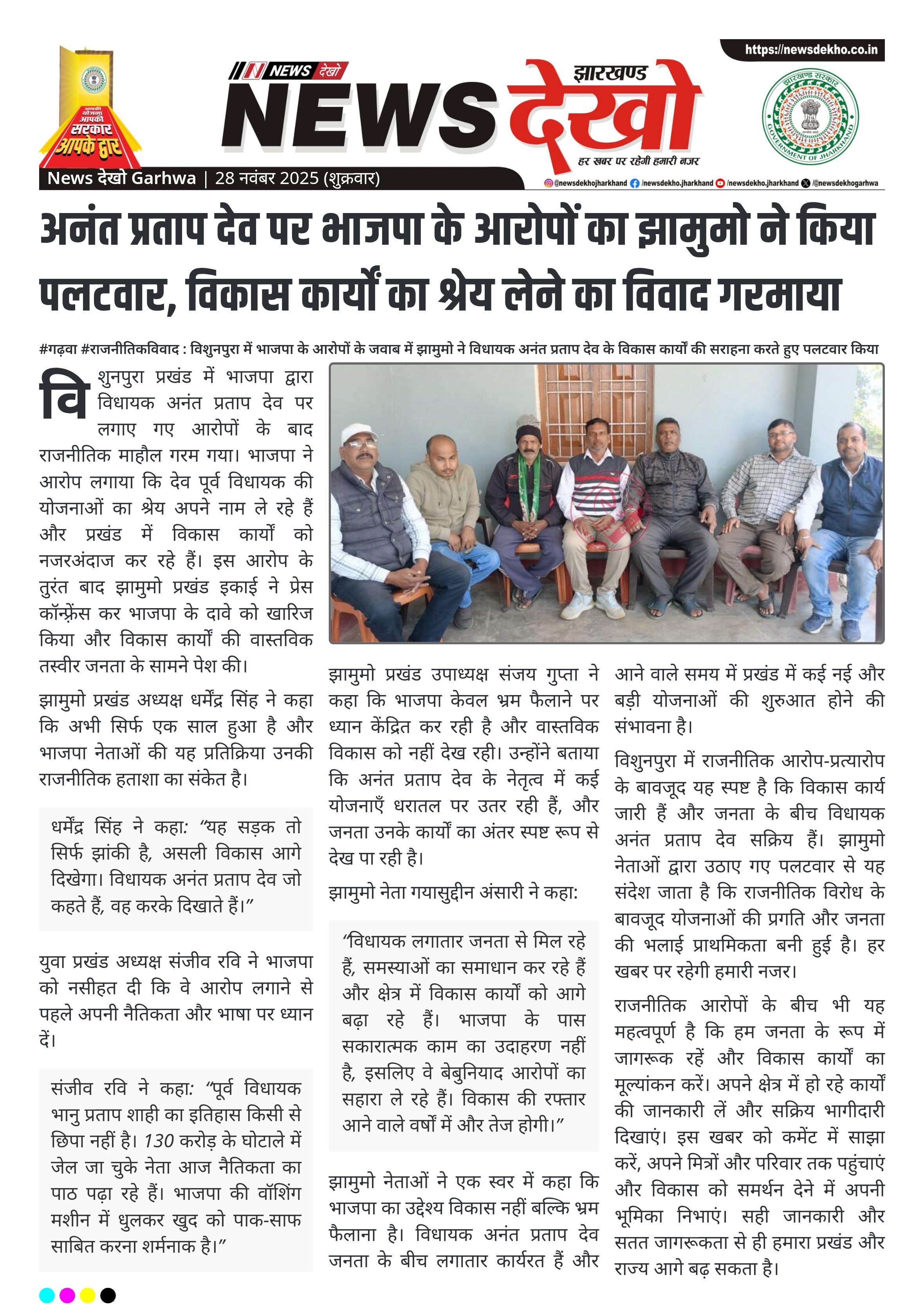 अनंत प्रताप देव पर भाजपा के आरोपों का झामुमो ने किया पलटवार, विकास कार्यों का श्रेय लेने का विवाद गरमाया