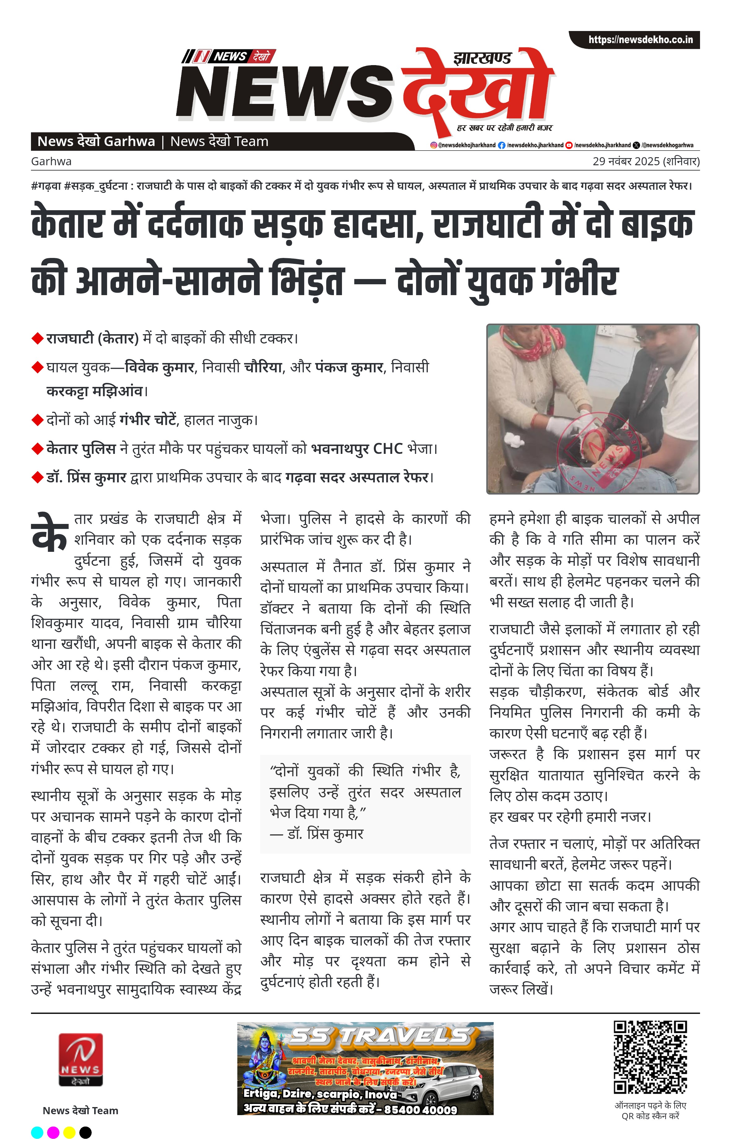 केतार में दर्दनाक सड़क हादसा, राजघाटी में दो बाइक की आमने-सामने भिड़ंत — दोनों युवक गंभीर