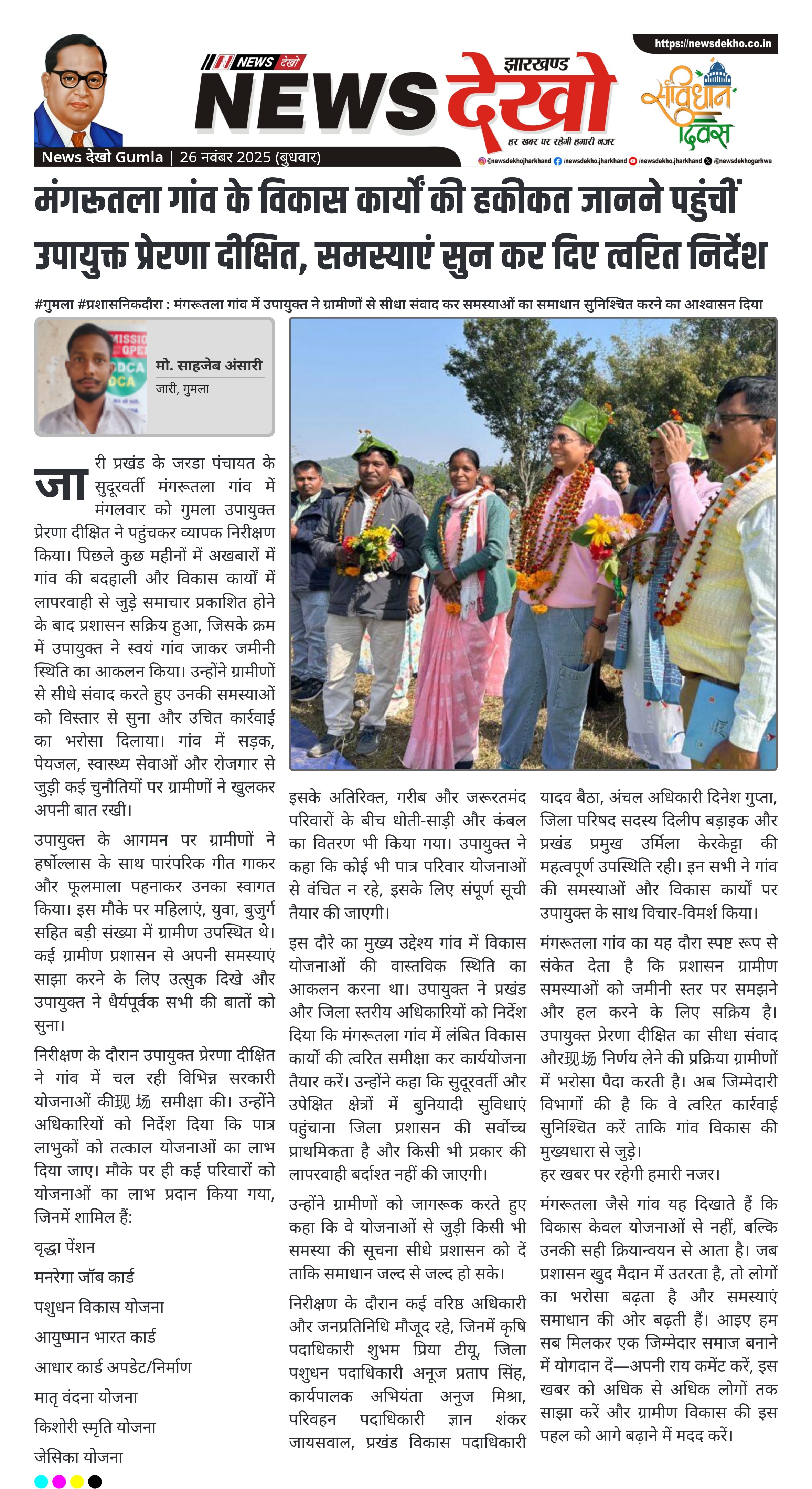 मंगरूतला गांव के विकास कार्यों की हकीकत जानने पहुंचीं उपायुक्त प्रेरणा दीक्षित, समस्याएं सुन कर दिए त्वरित निर्देश