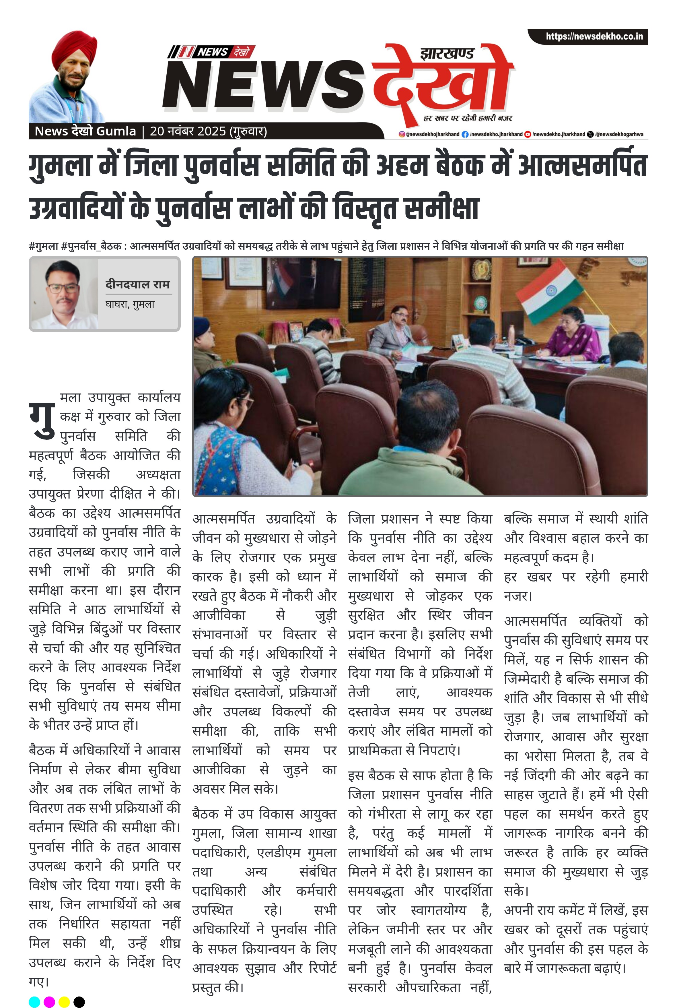 गुमला में जिला पुनर्वास समिति की अहम बैठक में आत्मसमर्पित उग्रवादियों के पुनर्वास लाभों की विस्तृत समीक्षा