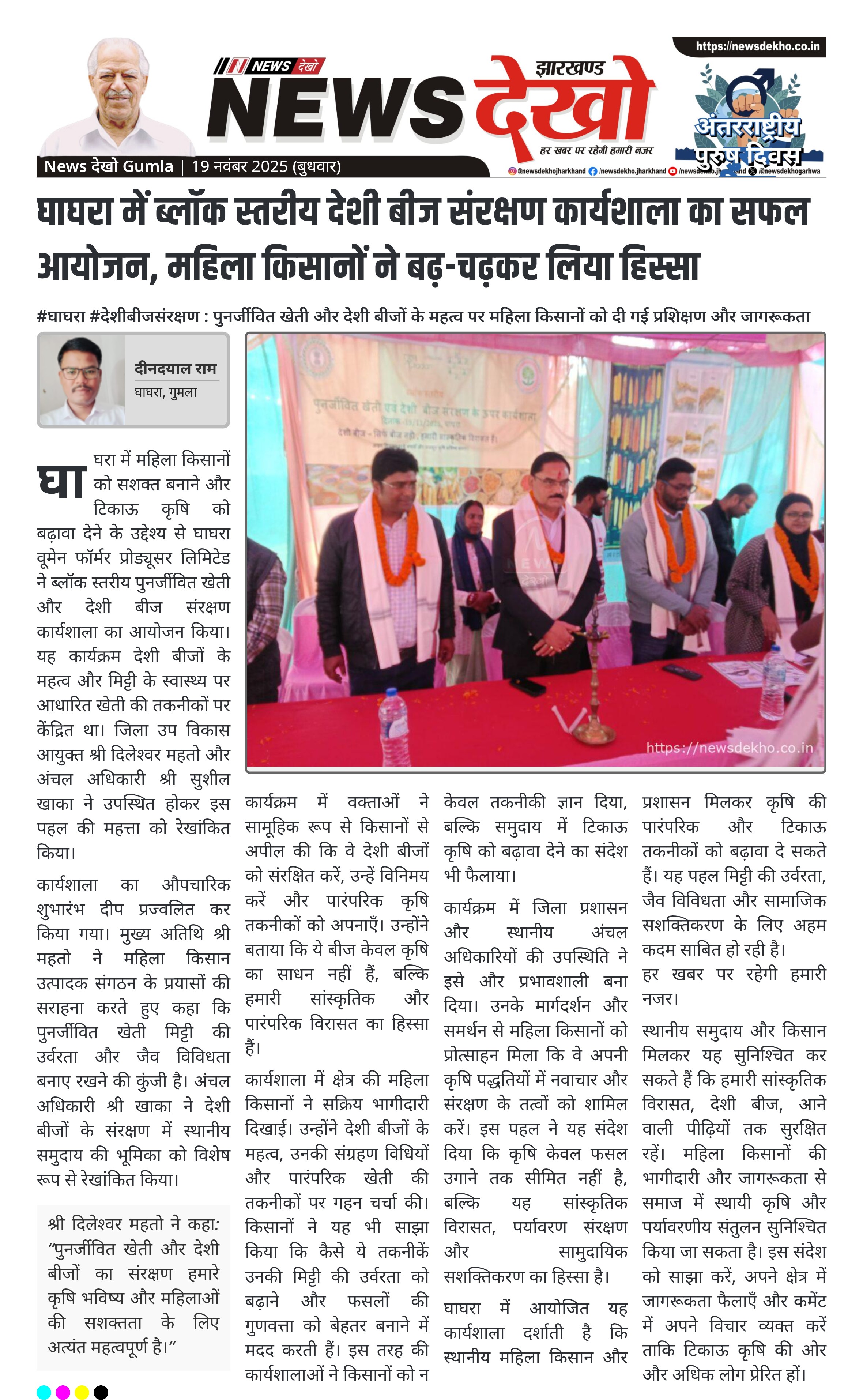घाघरा में ब्लॉक स्तरीय देशी बीज संरक्षण कार्यशाला का सफल आयोजन, महिला किसानों ने बढ़-चढ़कर लिया हिस्सा
