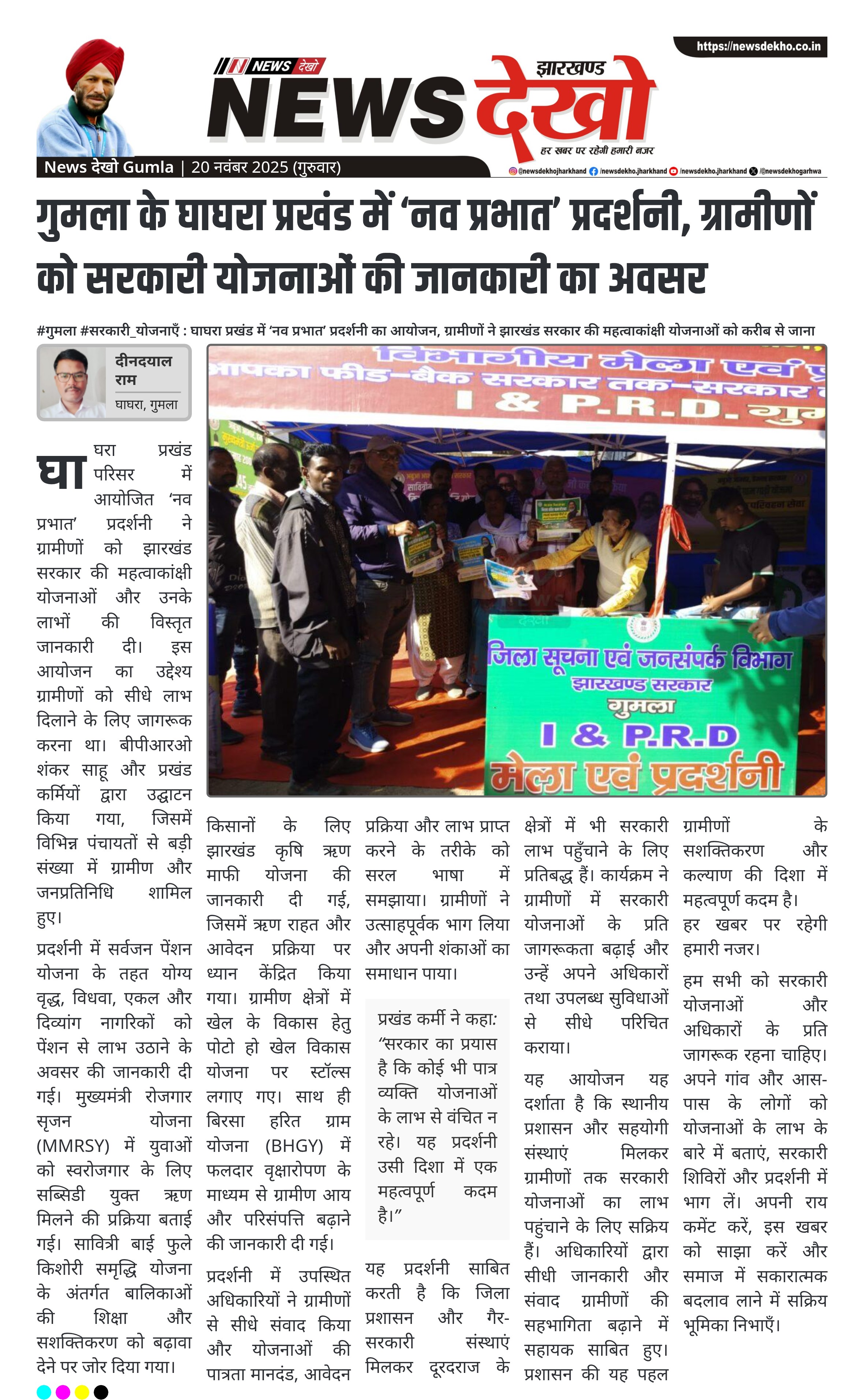 #गुमला #सरकारी_योजनाएँ : घाघरा प्रखंड में ‘नव प्रभात’ प्रदर्शनी का आयोजन, ग्रामीणों ने झारखंड सरकार की महत्वाकांक्षी योजनाओं को करीब से जाना घाघरा प्रखंड परिसर में ‘नव प्रभात’ प्रदर्शनी का भव्य आयोजन। बीपीआरओ शंकर साहू और प्रखंड कर्मियों ने फीता काटकर उद्घाटन किया। ग्रामीण और जनप्रतिनिधि बड़ी संख्या में उपस्थित।…