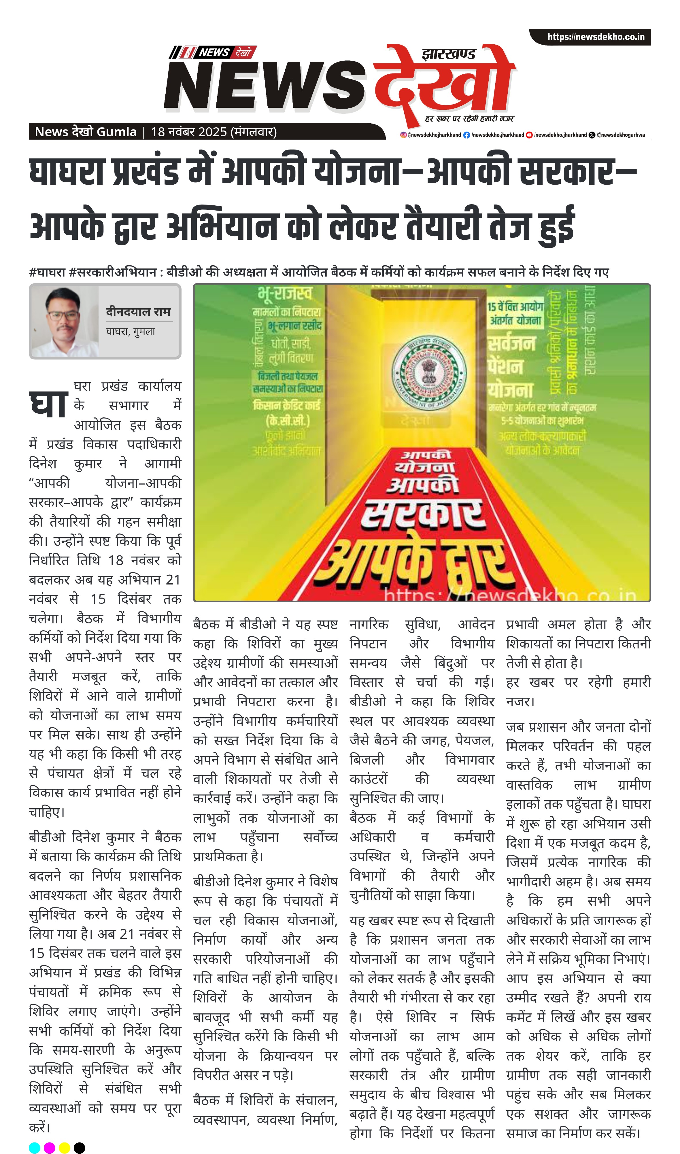 घाघरा प्रखंड में आपकी योजना–आपकी सरकार–आपके द्वार अभियान को लेकर तैयारी तेज हुई