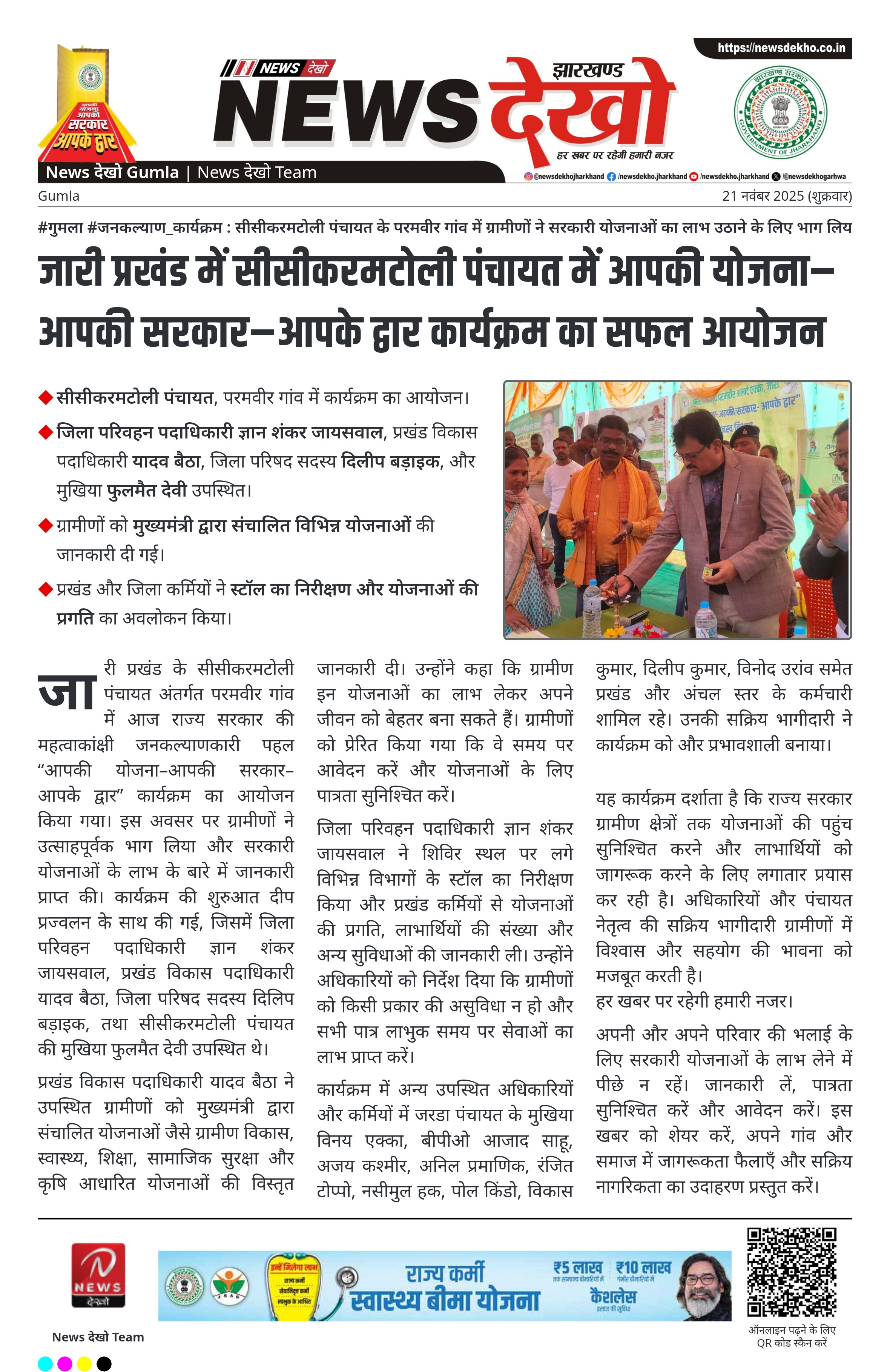 सीसीकरमटोली पंचायत में 21 नवंबर को ‘आपकी योजना–आपकी सरकार–आपके द्वार’ शिविर आयोजित