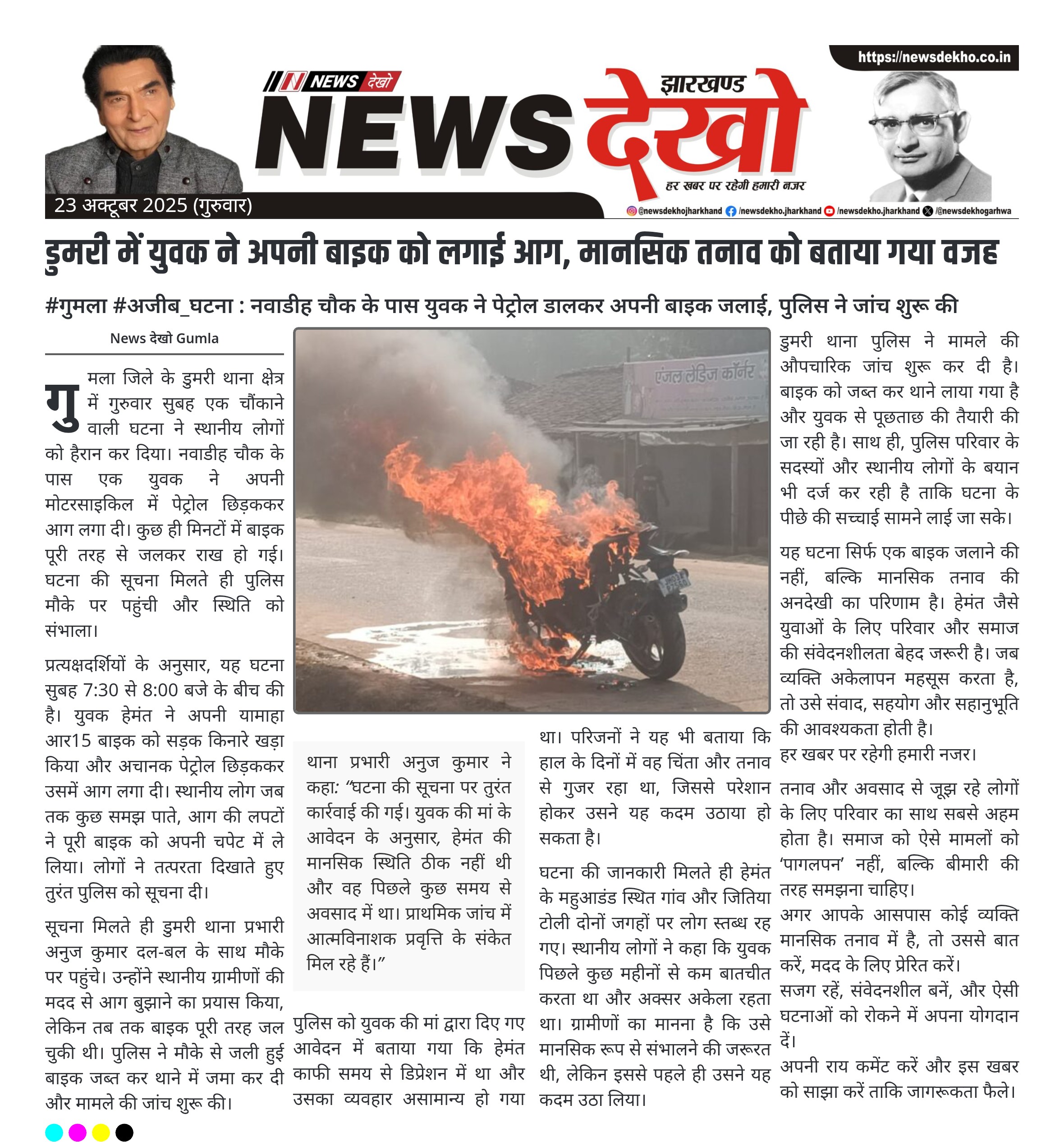 डुमरी में युवक ने अपनी बाइक को लगाई आग, मानसिक तनाव को बताया गया वजह