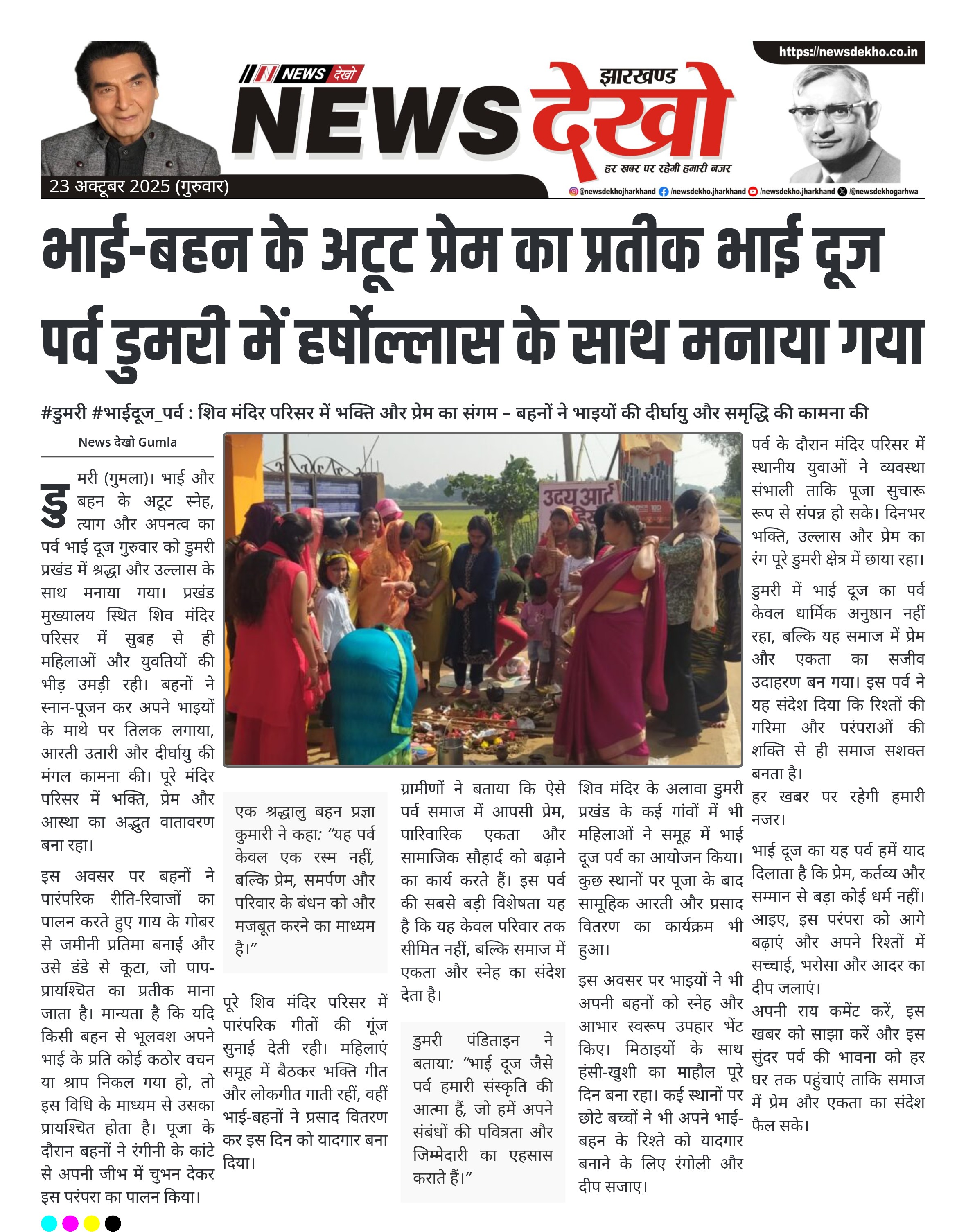 #डुमरी #भाईदूज_पर्व : शिव मंदिर परिसर में भक्ति और प्रेम का संगम – बहनों ने भाइयों की दीर्घायु और समृद्धि की कामना की डुमरी प्रखंड मुख्यालय स्थित शिव मंदिर परिसर में भाई दूज पर्व पारंपरिक रीति-रिवाज के साथ मनाया गया। बहनों ने भाइयों के दीर्घायु, सुख-समृद्धि और स्वास्थ्य की कामना…