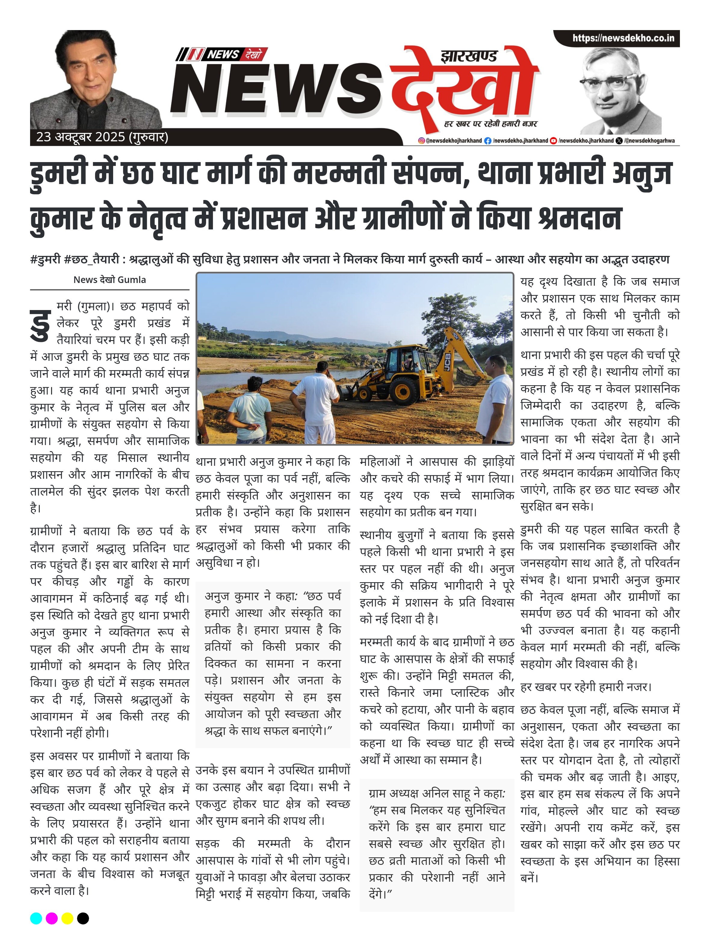 डुमरी में छठ घाट मार्ग की मरम्मती संपन्न, थाना प्रभारी अनुज कुमार के नेतृत्व में प्रशासन और ग्रामीणों ने किया श्रमदान