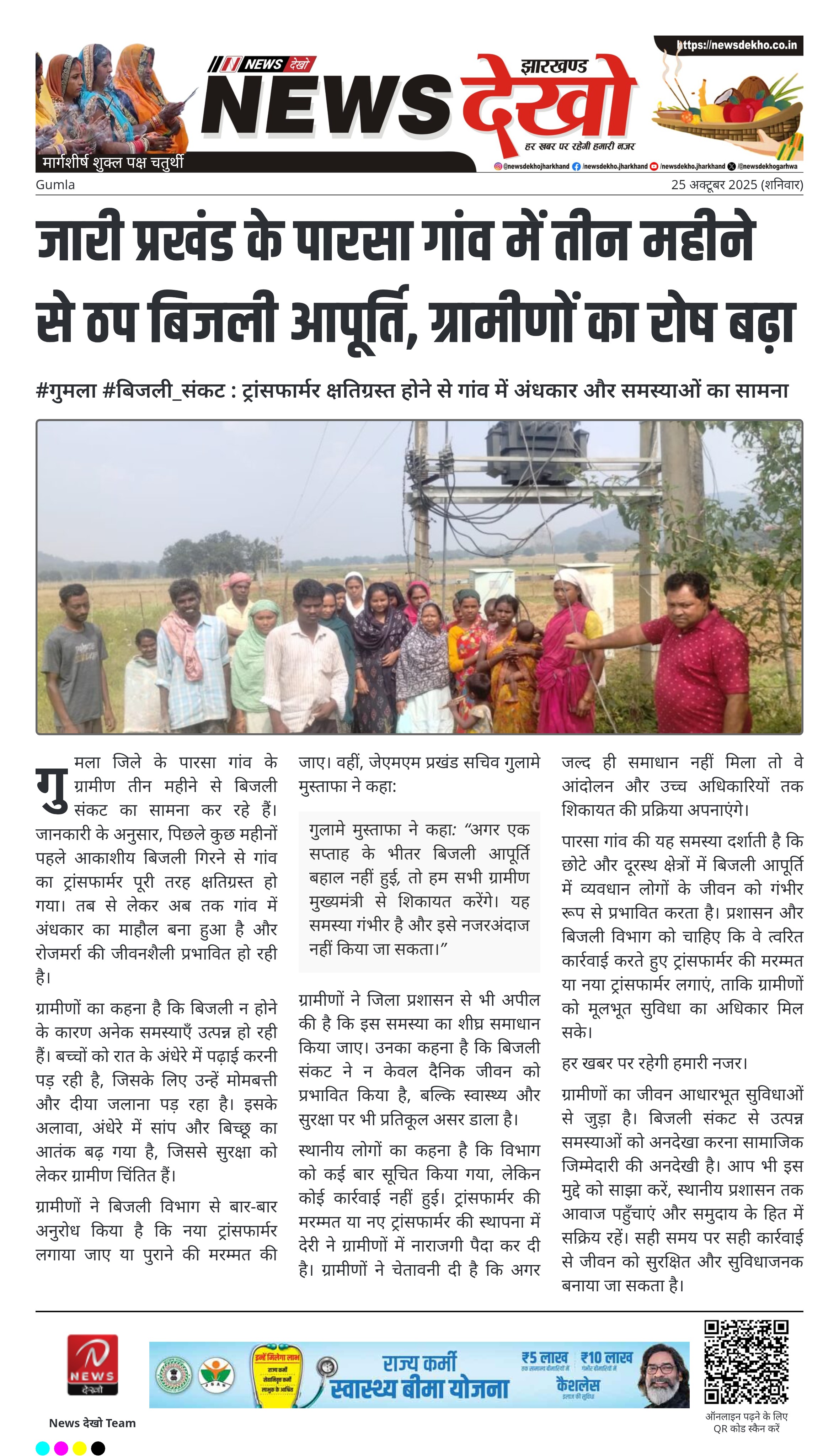 #गुमला #बिजली_संकट : ट्रांसफार्मर क्षतिग्रस्त होने से गांव में अंधकार और समस्याओं का सामना गुमला जिले के पारसा गांव में बिजली आपूर्ति तीन महीने से ठप है। गांव का ट्रांसफार्मर आकाशीय बिजली गिरने से क्षतिग्रस्त हो गया था। ग्रामीणों ने कई बार बिजली विभाग को सूचना दी, लेकिन मरम्मत या…