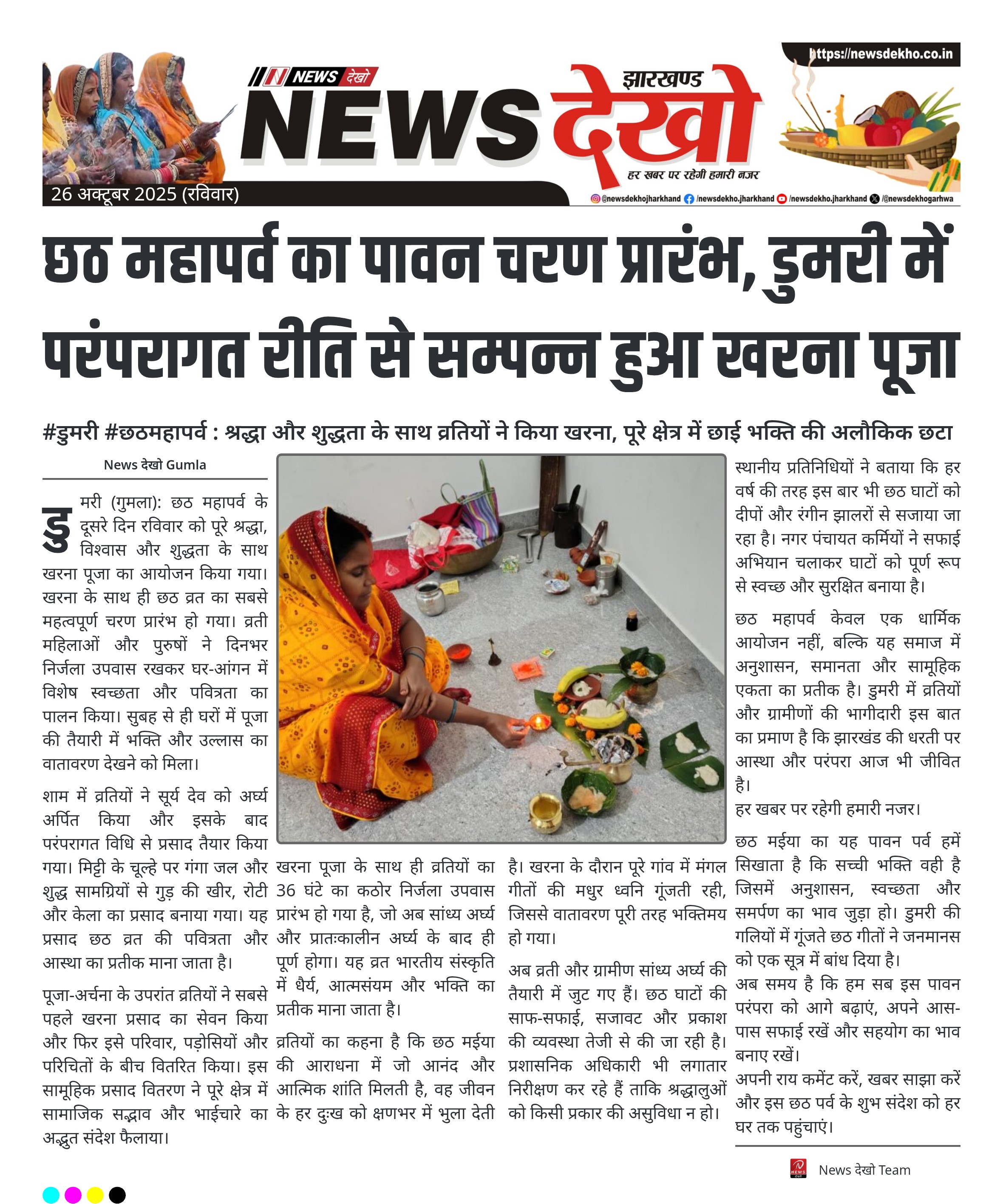 छठ महापर्व का पावन चरण प्रारंभ, डुमरी में परंपरागत रीति से सम्पन्न हुआ खरना पूजा