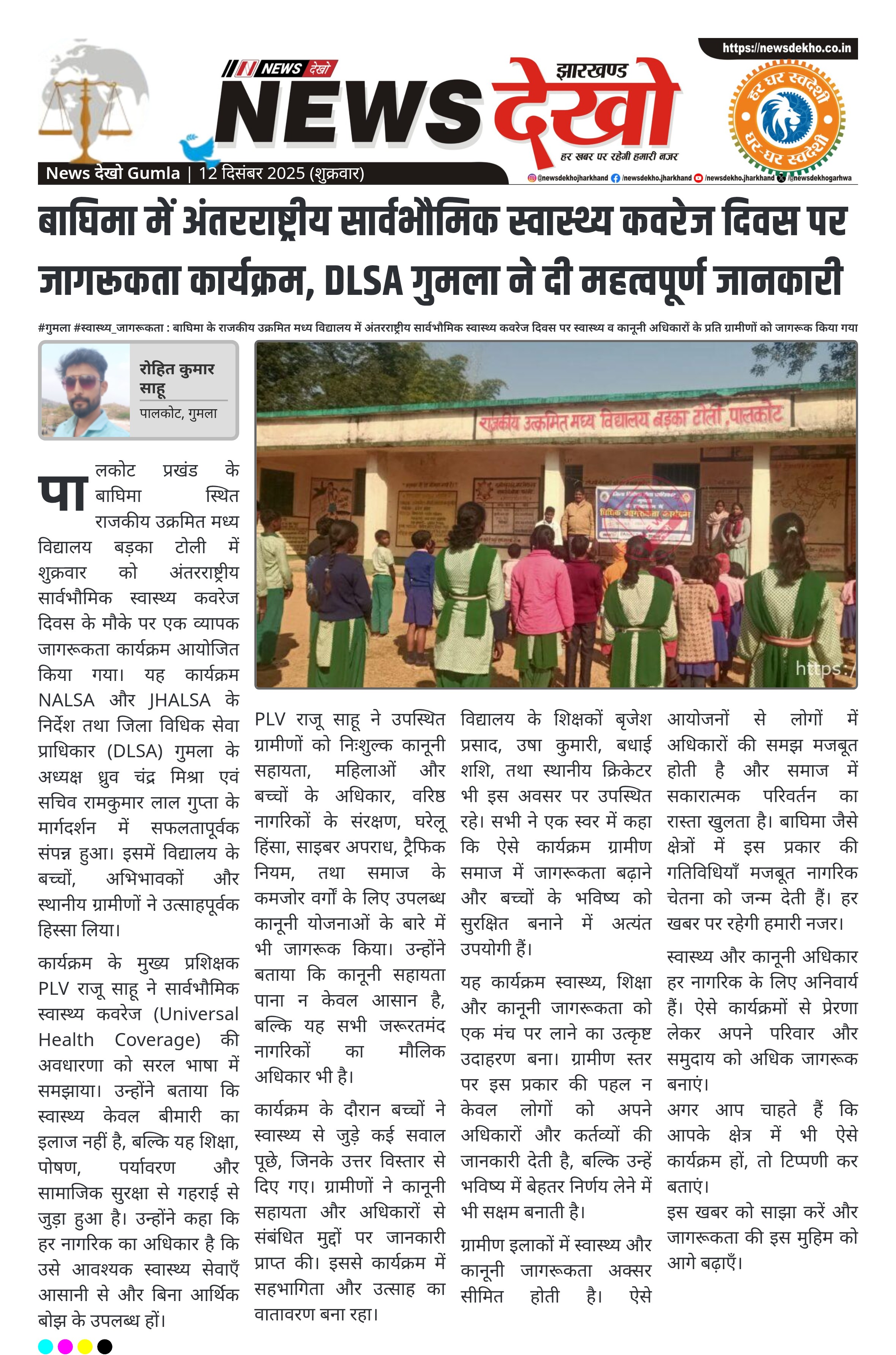 बाघिमा में अंतरराष्ट्रीय सार्वभौमिक स्वास्थ्य कवरेज दिवस पर जागरूकता कार्यक्रम, DLSA गुमला ने दी महत्वपूर्ण जानकारी