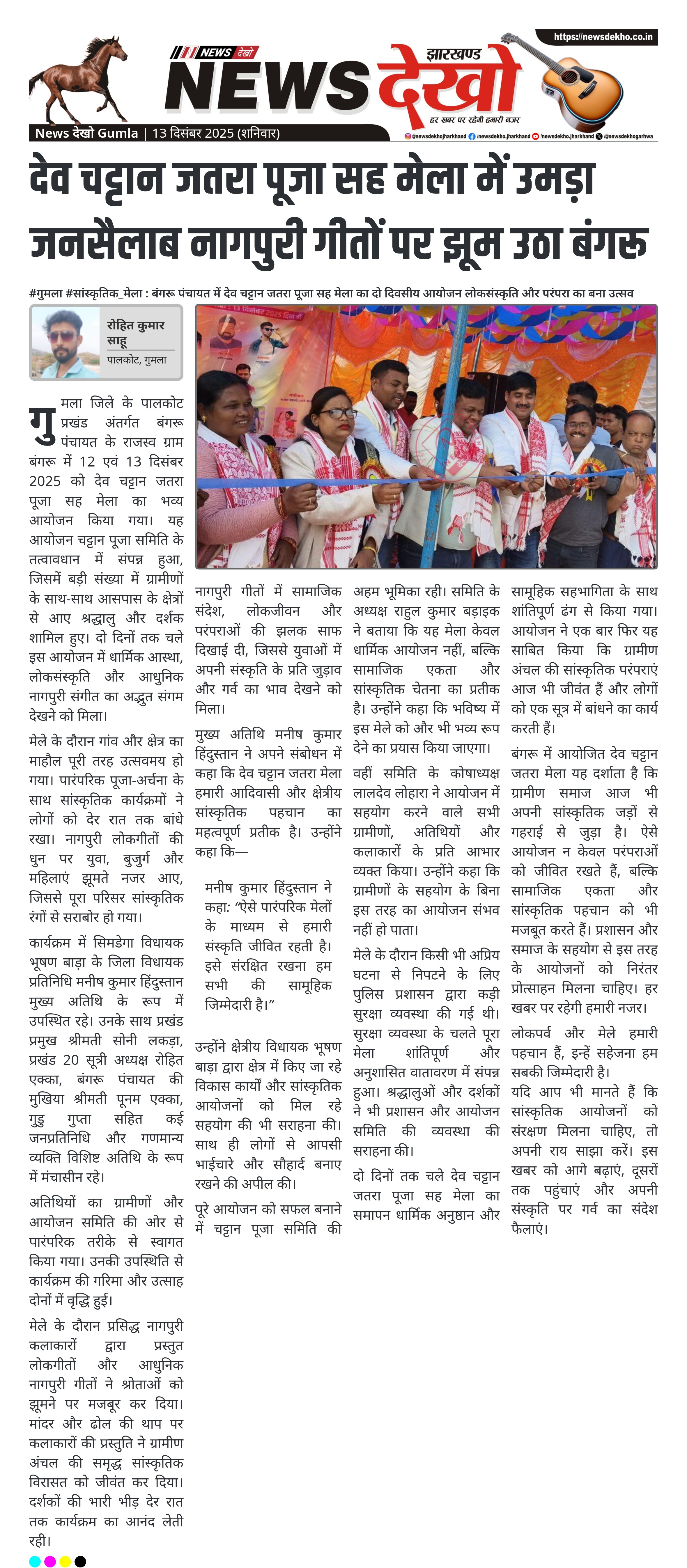 #गुमला #सांस्कृतिक_मेला : बंगरू पंचायत में देव चट्टान जतरा पूजा सह मेला का दो दिवसीय आयोजन लोकसंस्कृति और परंपरा का बना उत्सव 12 और 13 दिसंबर 2025 को दो दिवसीय आयोजन। बंगरू राजस्व ग्राम में देव चट्टान जतरा पूजा सह मेला। नागपुरी लोकगीतों और आधुनिक सांस्कृतिक कार्यक्रमों ने बांधा समां।…