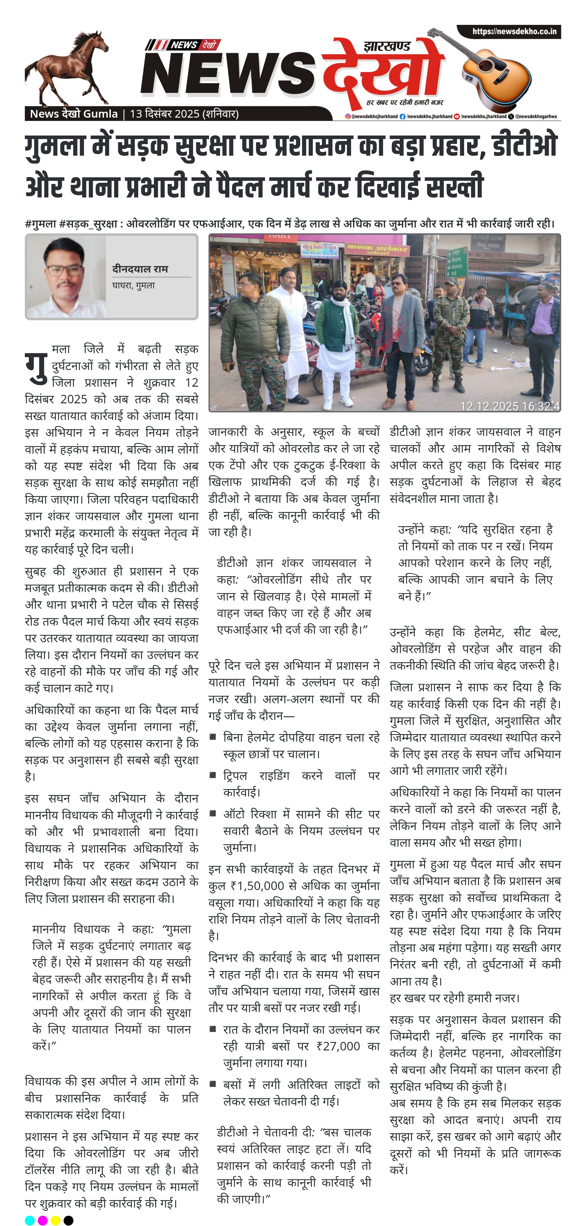 #गुमला #सड़क_सुरक्षा : ओवरलोडिंग पर एफआईआर, एक दिन में डेढ़ लाख से अधिक का जुर्माना और रात में भी कार्रवाई जारी रही। डीटीओ ज्ञान शंकर जायसवाल और थाना प्रभारी महेंद्र करमाली के नेतृत्व में सघन जाँच अभियान। पटेल चौक से सिसई रोड तक पैदल मार्च कर यातायात व्यवस्था का निरीक्षण।…