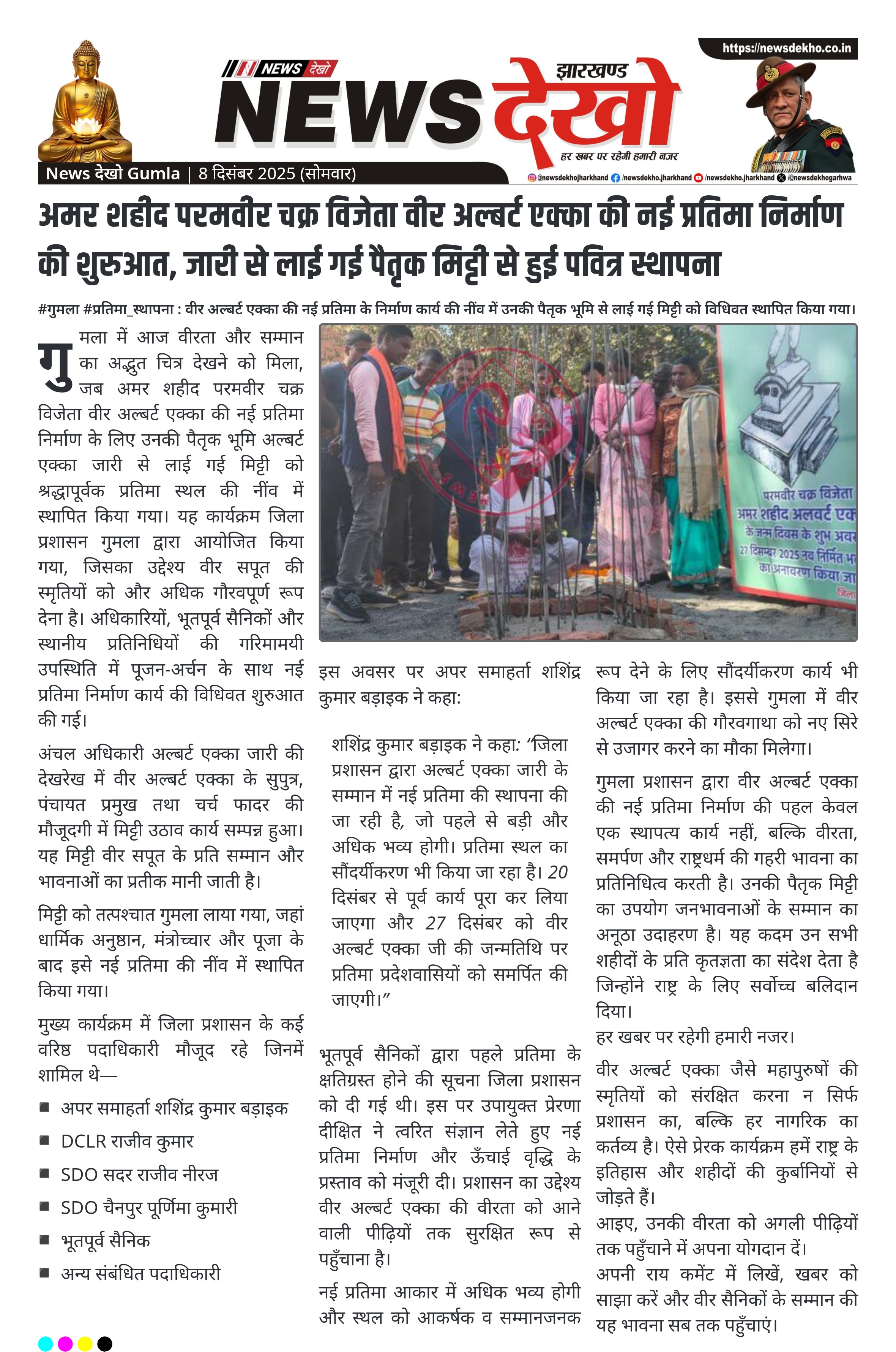 अमर शहीद परमवीर चक्र विजेता वीर अल्बर्ट एक्का की नई प्रतिमा निर्माण की शुरुआत, जारी से लाई गई पैतृक मिट्टी से हुई पवित्र स्थापना