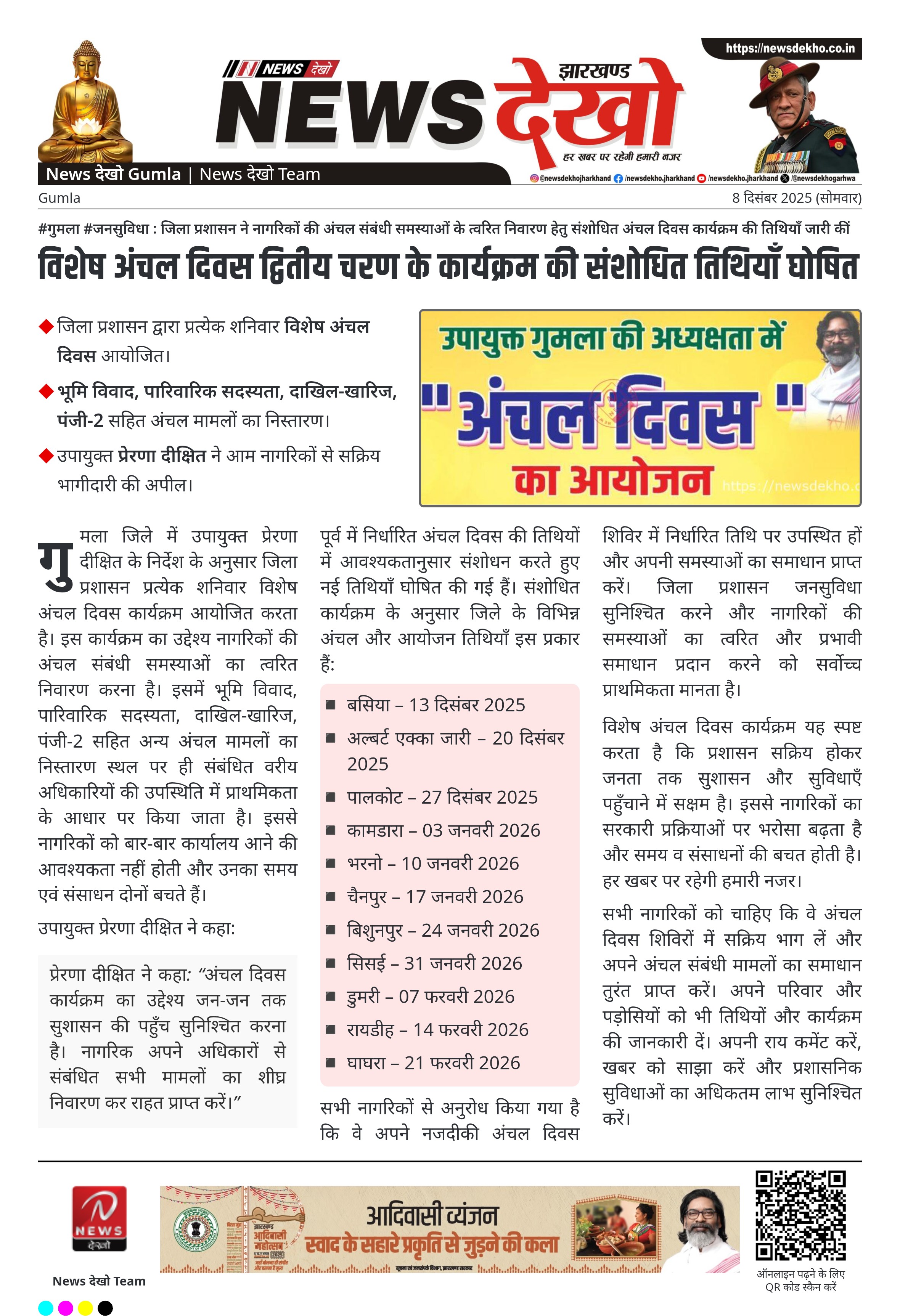विशेष अंचल दिवस द्वितीय चरण के कार्यक्रम की संशोधित तिथियाँ घोषित