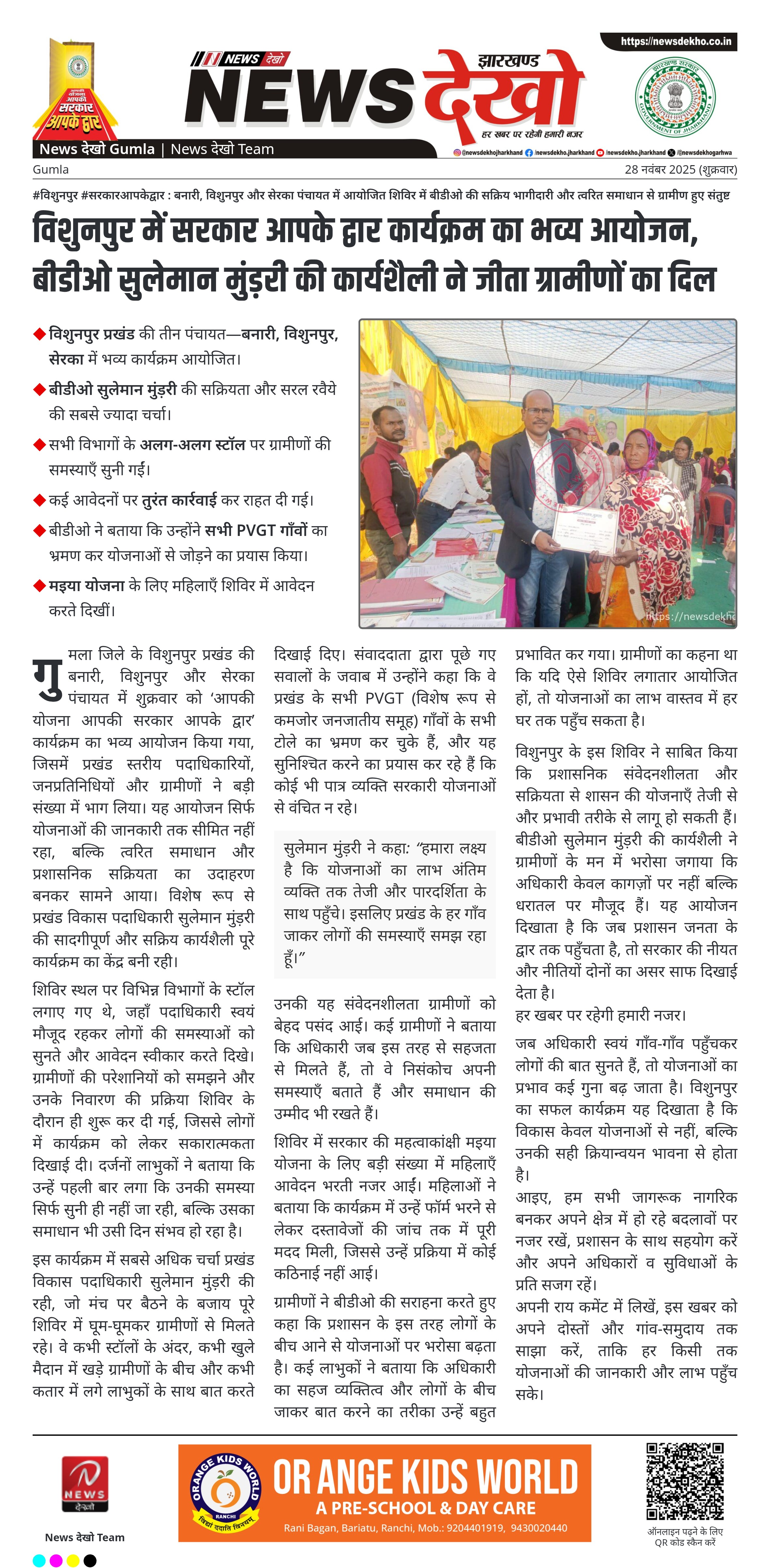 विशुनपुर में सरकार आपके द्वार कार्यक्रम का भव्य आयोजन, बीडीओ सुलेमान मुंड़री की कार्यशैली ने जीता ग्रामीणों का दिल