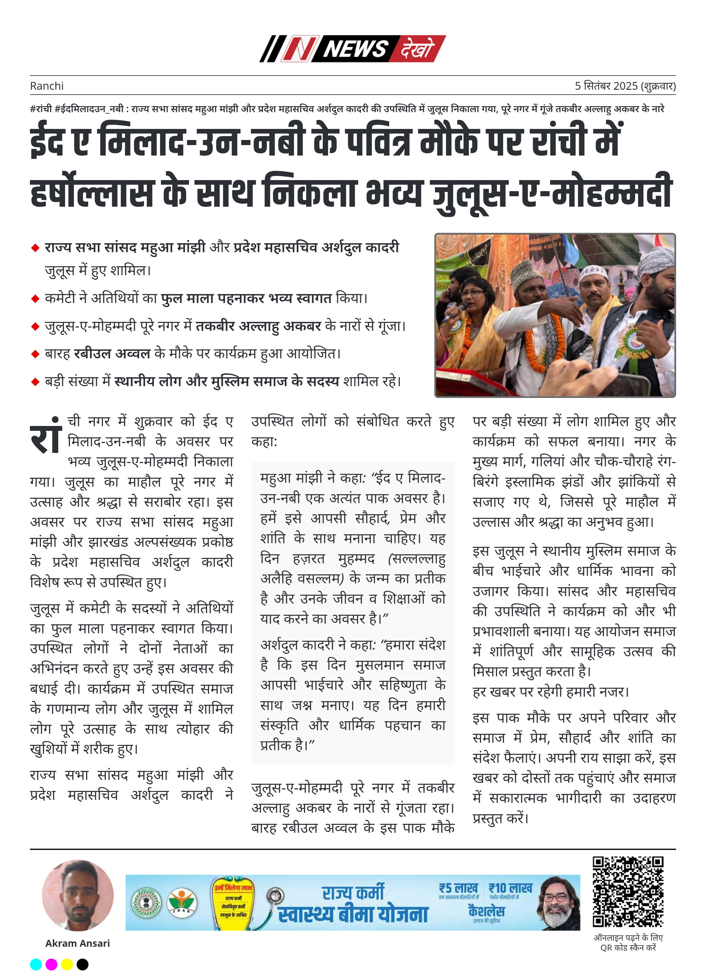 ईद ए मिलाद-उन-नबी के पवित्र मौके पर रांची में हर्षोल्लास के साथ निकला भव्य जुलूस-ए-मोहम्मदी