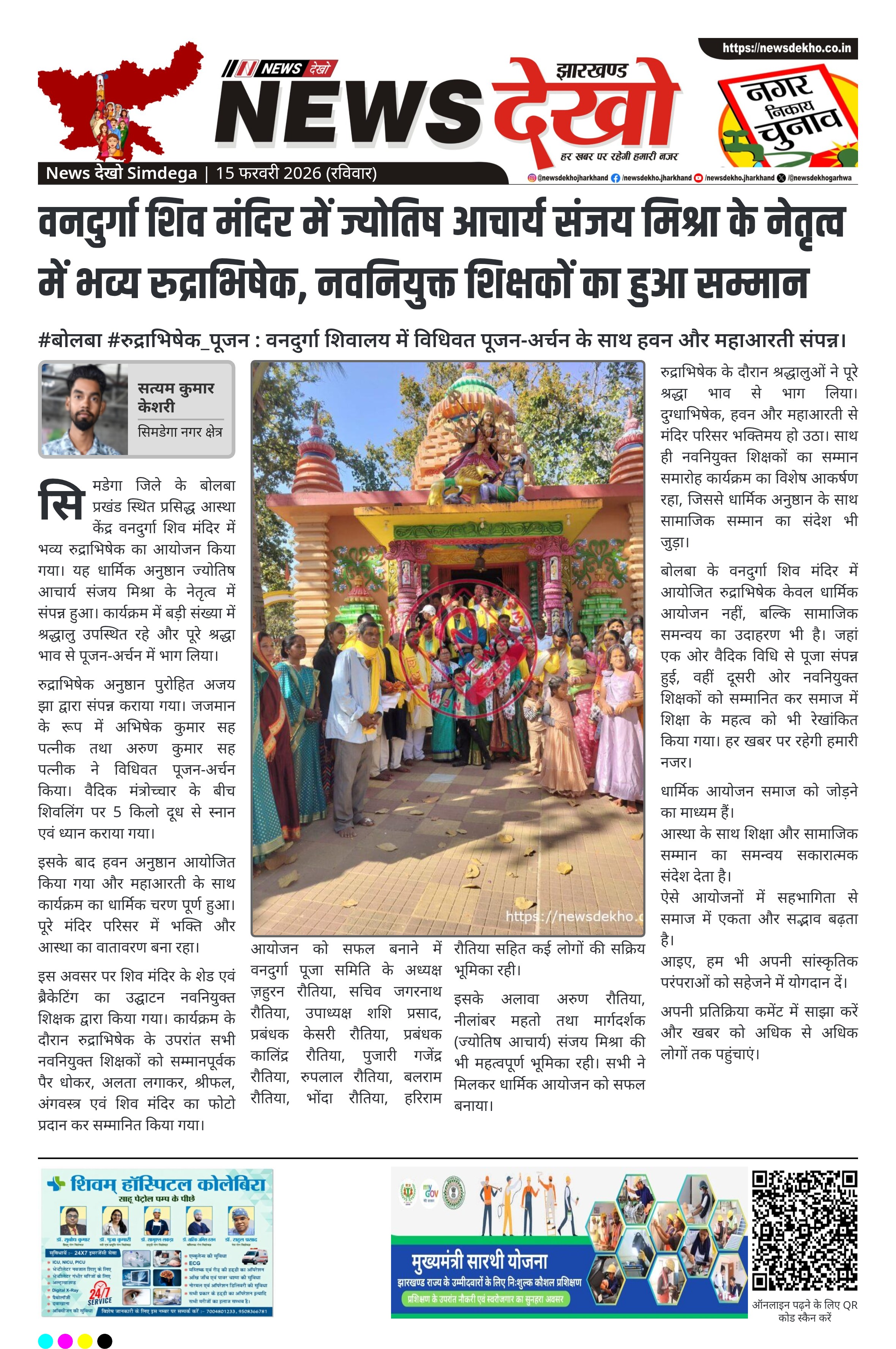 #बोलबा #रुद्राभिषेक_पूजन : वनदुर्गा शिवालय में विधिवत पूजन-अर्चन के साथ हवन और महाआरती संपन्न। वनदुर्गा शिव मंदिर, बोलबा में भव्य रुद्राभिषेक संपन्न। ज्योतिष आचार्य संजय मिश्रा के नेतृत्व में हुआ आयोजन। पुरोहित अजय झा ने कराया विधिवत पूजन-अर्चन। शिवलिंग पर 5 किलो दूध से किया गया अभिषेक। नवनियुक्त शिक्षकों को…