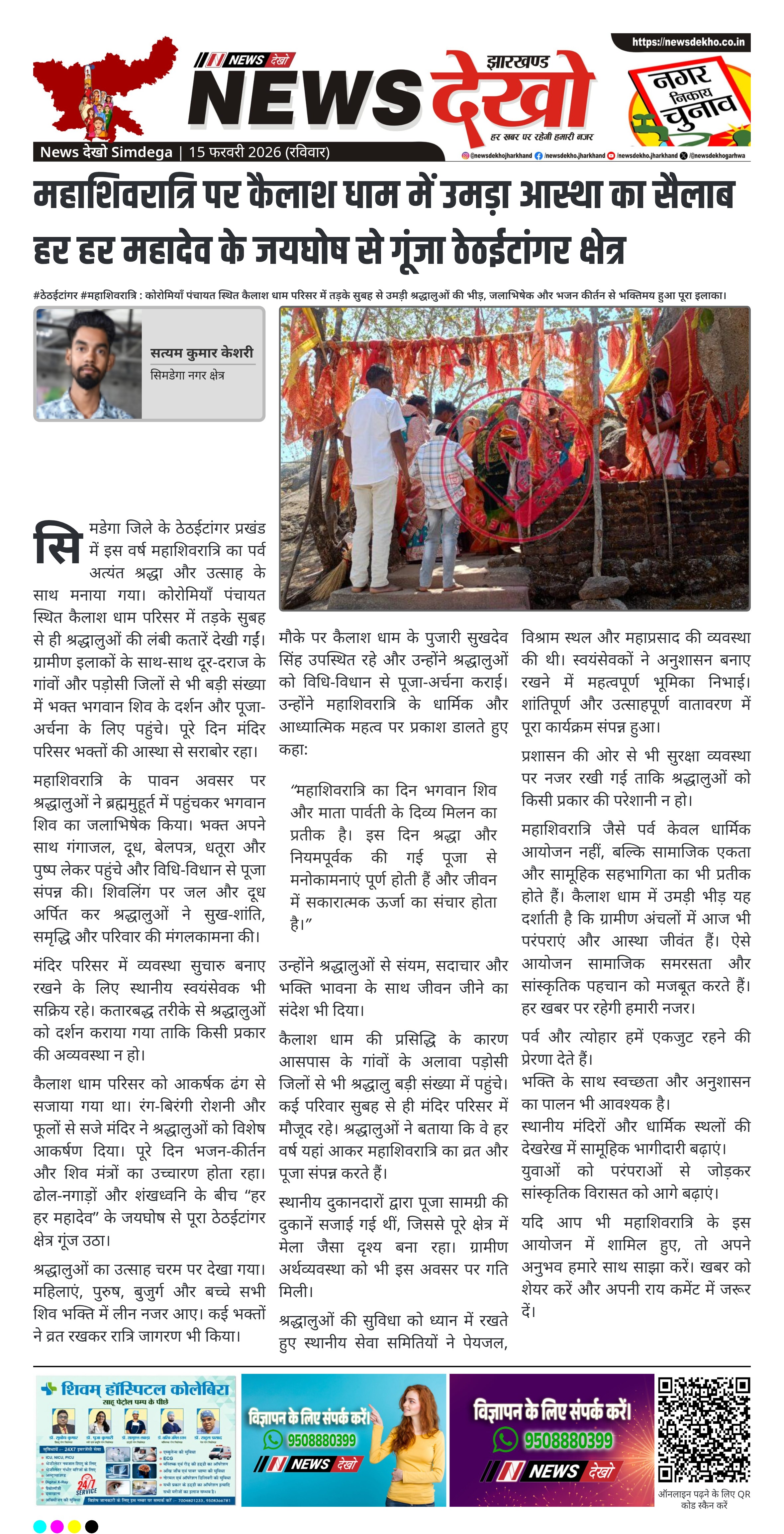 #ठेठईटांगर #महाशिवरात्रि : कोरोमियाँ पंचायत स्थित कैलाश धाम परिसर में तड़के सुबह से उमड़ी श्रद्धालुओं की भीड़, जलाभिषेक और भजन कीर्तन से भक्तिमय हुआ पूरा इलाका। कैलाश धाम, कोरोमियाँ पंचायत में तड़के सुबह से लगी श्रद्धालुओं की लंबी कतारें। विधि-विधान से किया गया भगवान शिव का जलाभिषेक और पूजा-अर्चना। पूरे…