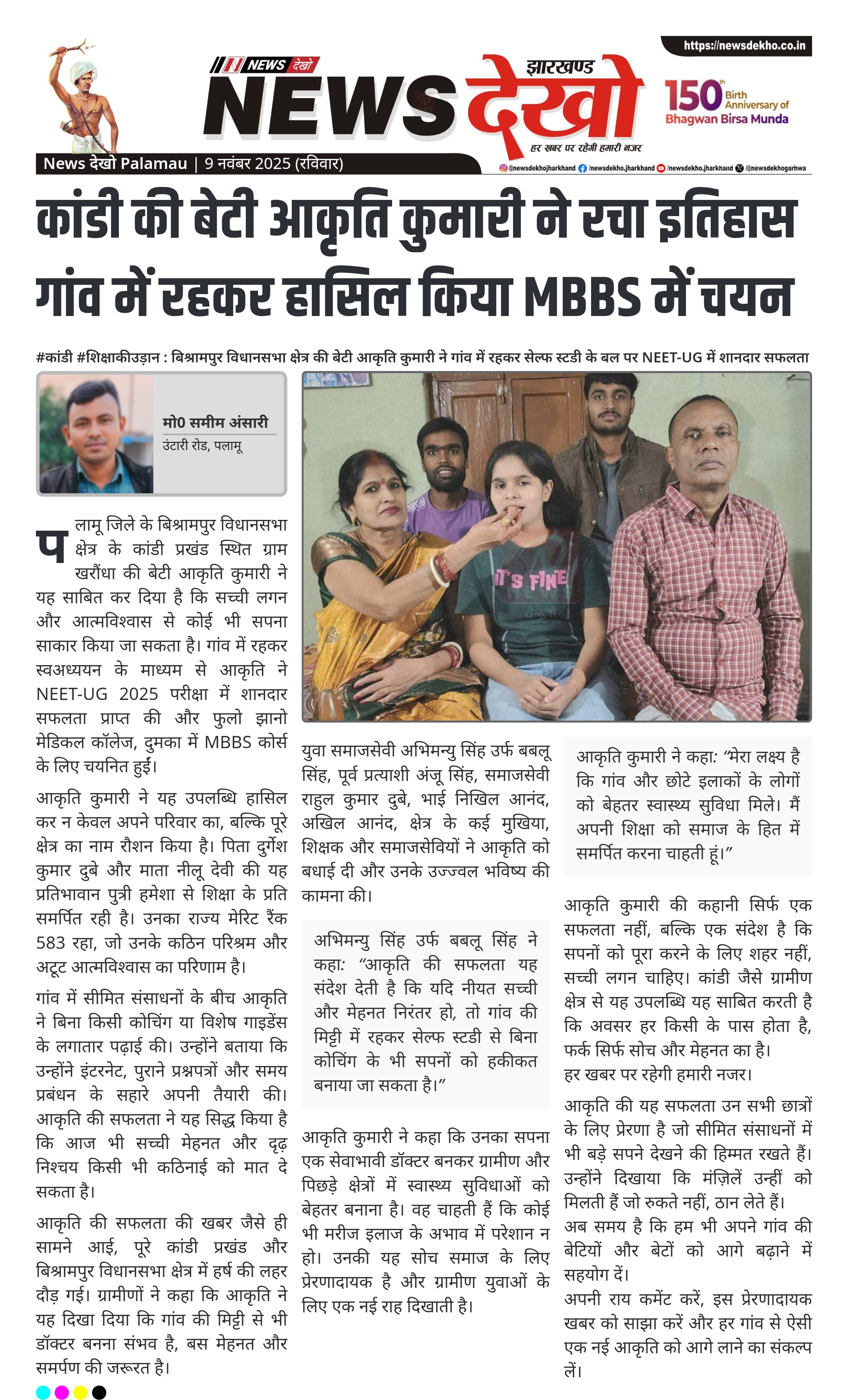 #कांडी #शिक्षाकीउड़ान : बिश्रामपुर विधानसभा क्षेत्र की बेटी आकृति कुमारी ने गांव में रहकर सेल्फ स्टडी के बल पर NEET-UG में शानदार सफलता पाकर पूरे क्षेत्र का मान बढ़ाया। कांडी प्रखंड के ग्राम खरौंधा की आकृति कुमारी ने NEET-UG 2025 में पाई सफलता। फुलो झानो मेडिकल कॉलेज, दुमका में MBBS…