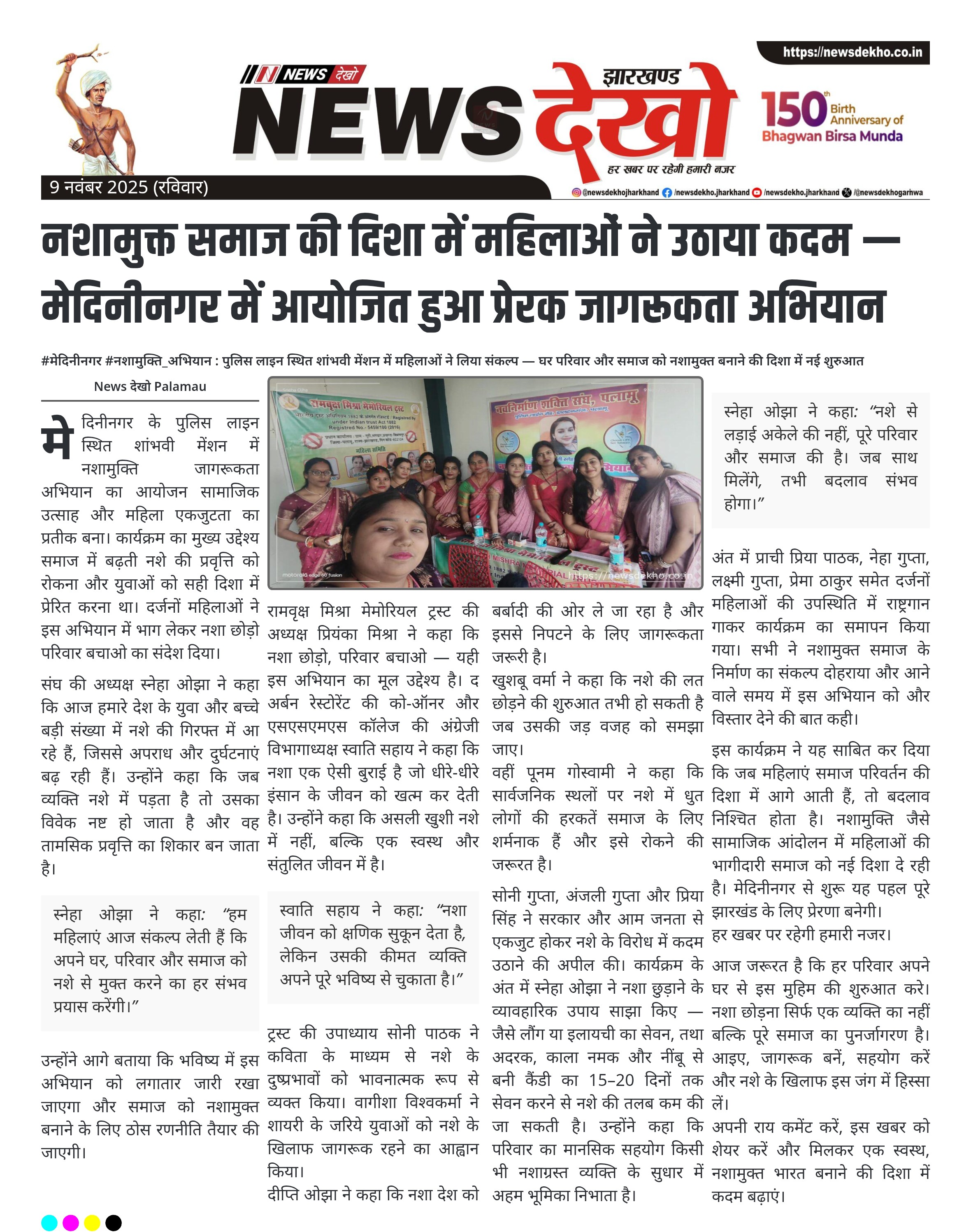 नशामुक्त समाज की दिशा में महिलाओं ने उठाया कदम — मेदिनीनगर में आयोजित हुआ प्रेरक जागरूकता अभियान