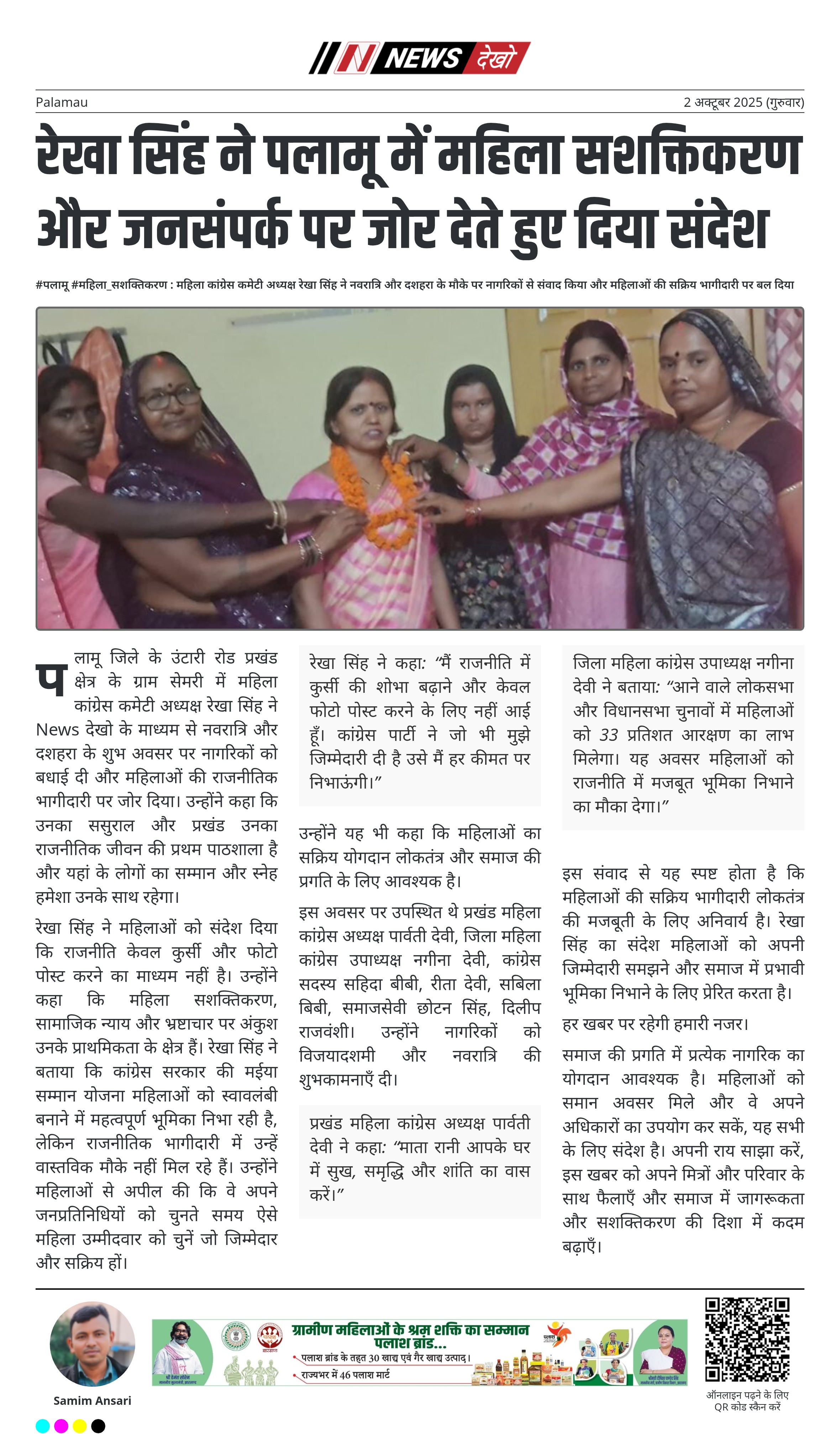 रेखा सिंह ने पलामू में महिला सशक्तिकरण और जनसंपर्क पर जोर देते हुए दिया संदेश