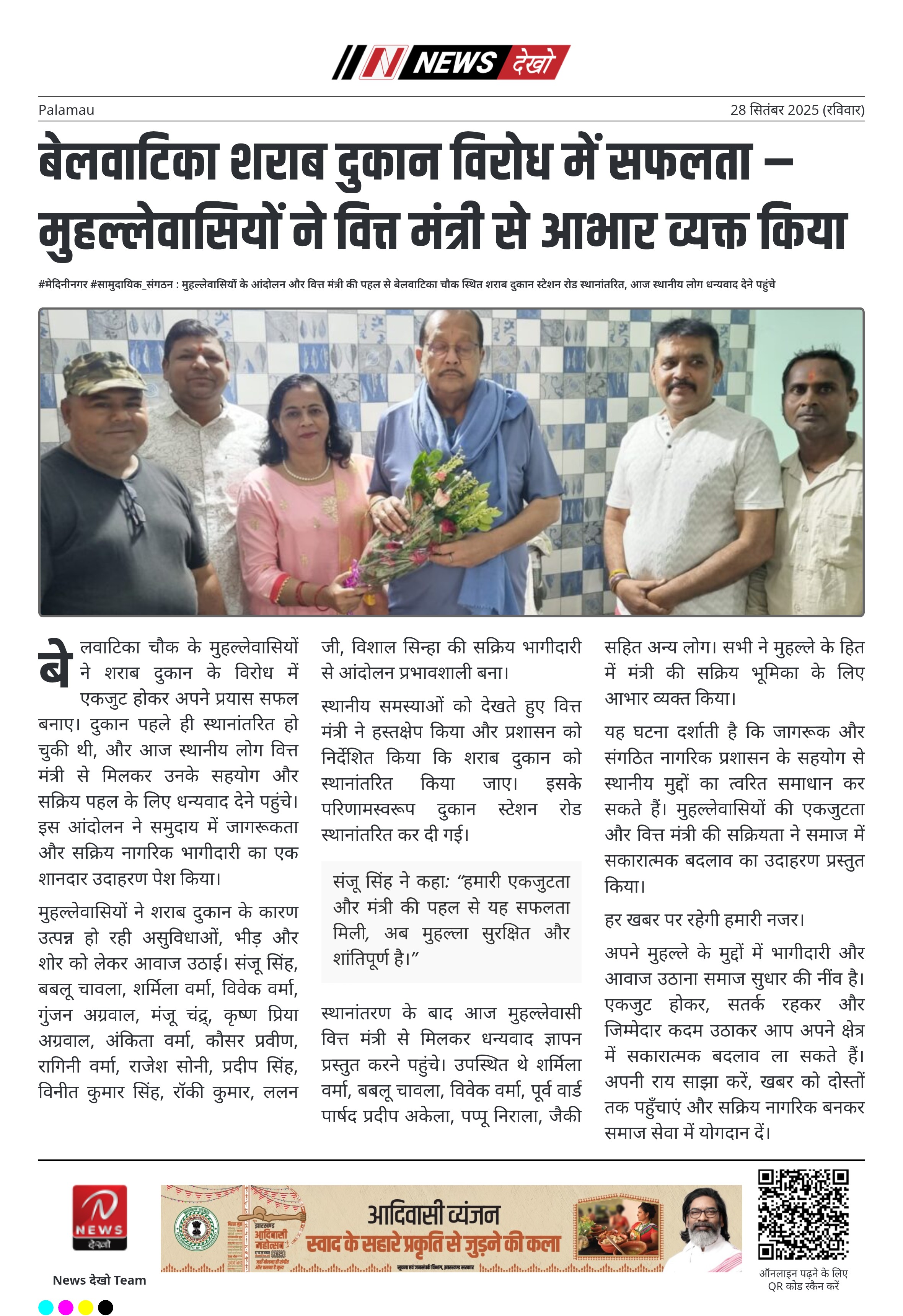 बेलवाटिका शराब दुकान विरोध में सफलता – मुहल्लेवासियों ने वित्त मंत्री से आभार व्यक्त किया