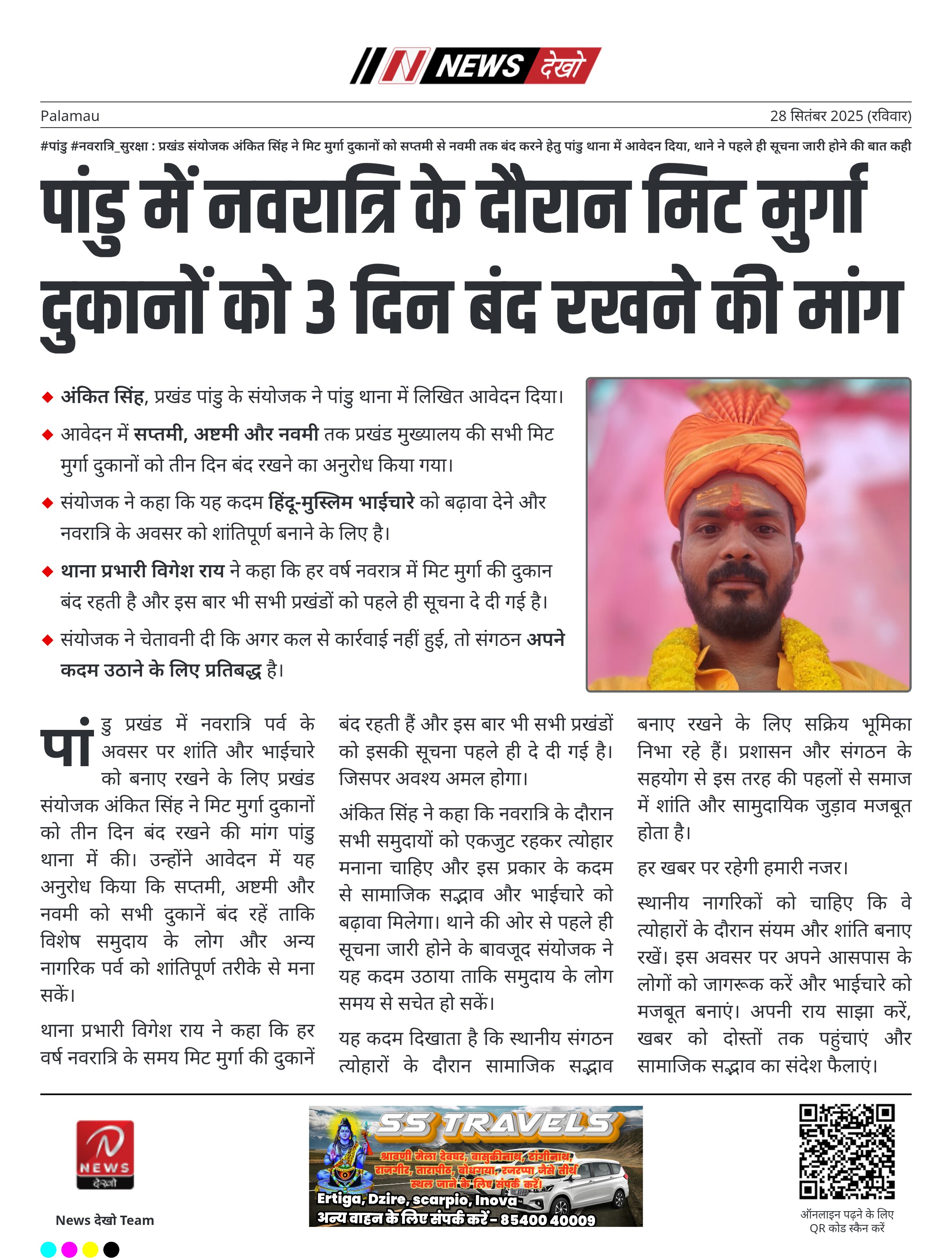 #पांडु #नवरात्रि_सुरक्षा : प्रखंड संयोजक अंकित सिंह ने मिट मुर्गा दुकानों को सप्तमी से नवमी तक बंद करने हेतु पांडु थाना में आवेदन दिया, थाने ने पहले ही सूचना जारी होने की बात कही अंकित सिंह, प्रखंड पांडु के संयोजक ने पांडु थाना में लिखित आवेदन दिया। आवेदन में सप्तमी,…