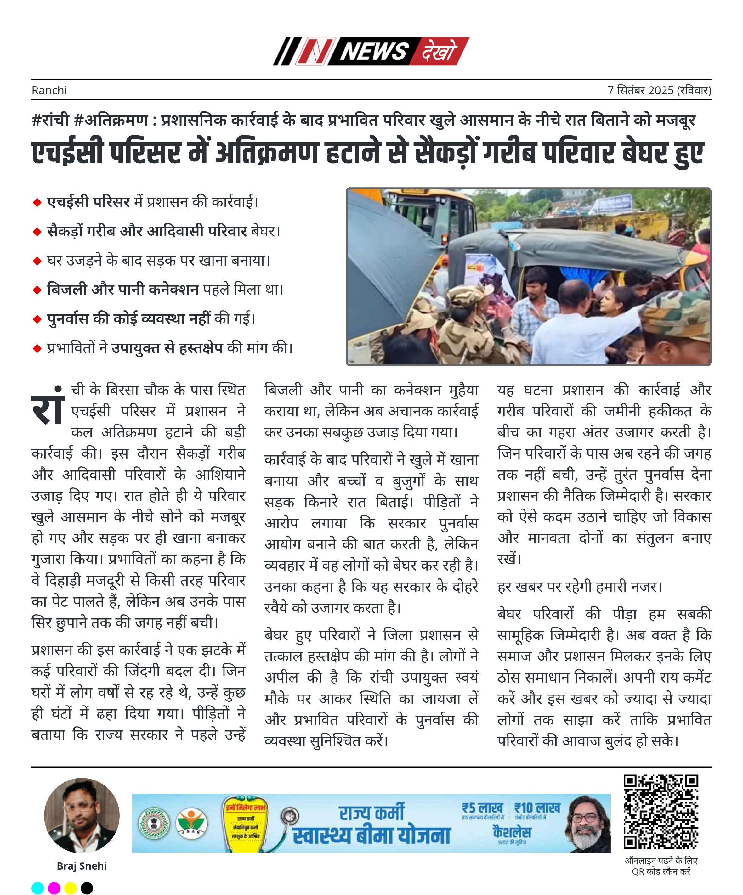 एचईसी परिसर में अतिक्रमण हटाने से सैकड़ों गरीब परिवार बेघर हुए