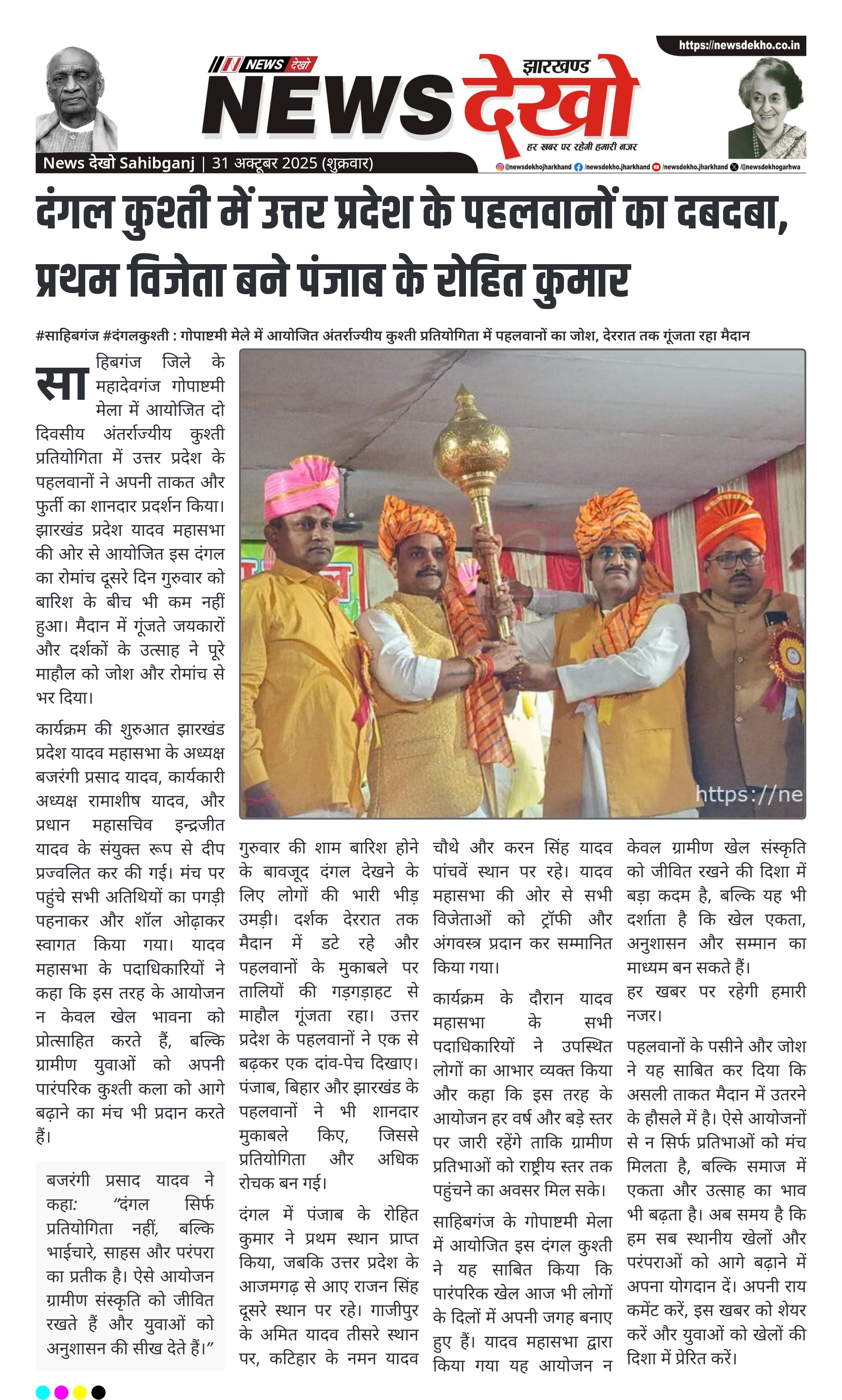 दंगल कुश्ती में उत्तर प्रदेश के पहलवानों का दबदबा, प्रथम विजेता बने पंजाब के रोहित कुमार